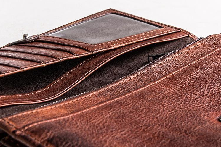 Style: Handmade Leather Mens Cool Long Leather Wallet Bifold Clutch Wallet for Men