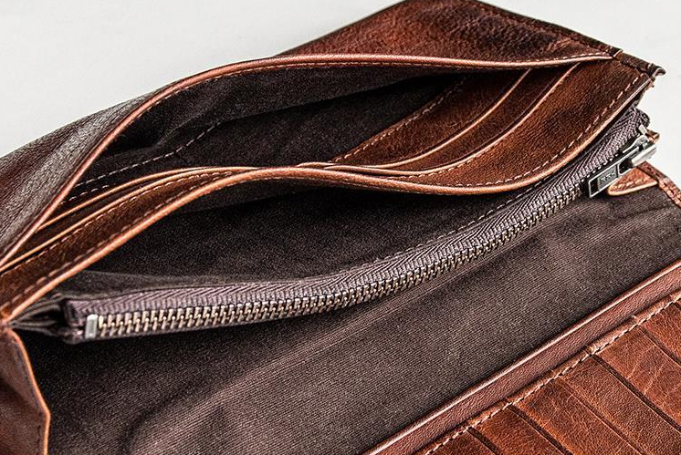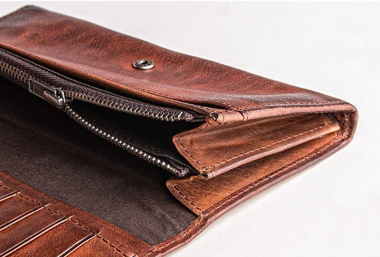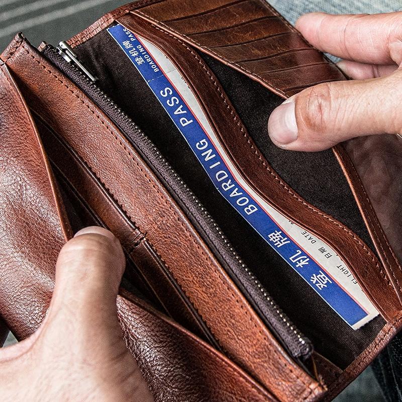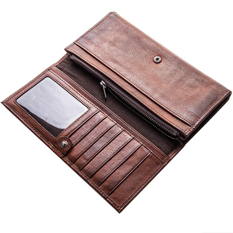 Design: Handmade Leather Mens Cool Long Leather Wallet Bifold Clutch Wallet for Men