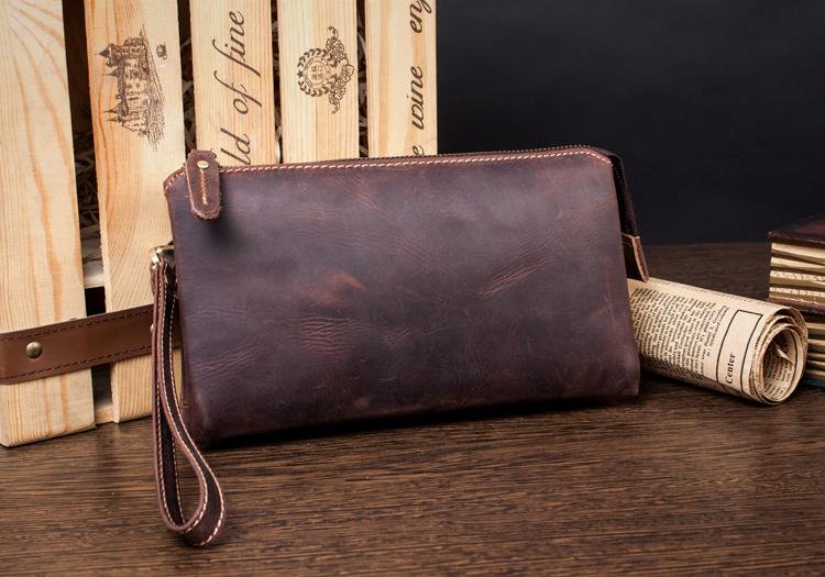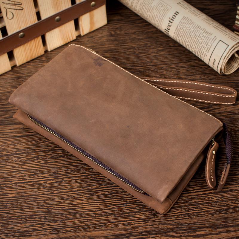 Design: Light Brown Cool Mens long Wallet Wristlet Bag Clutch Bag Dark Brown Long Wallets for Men