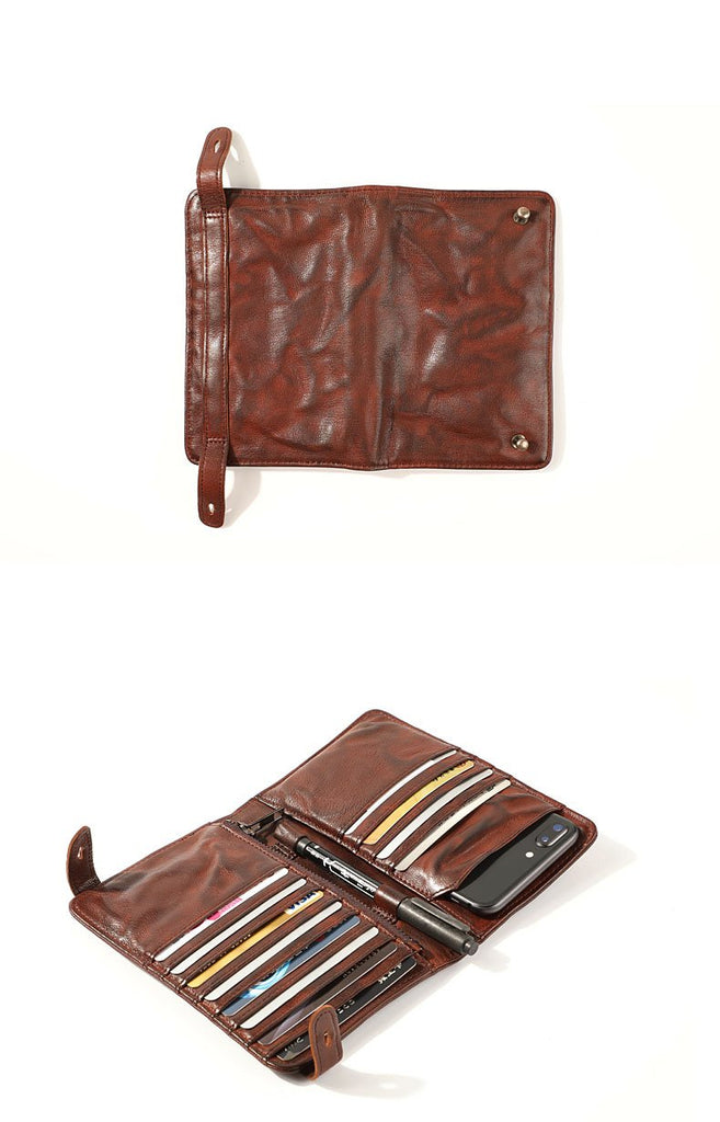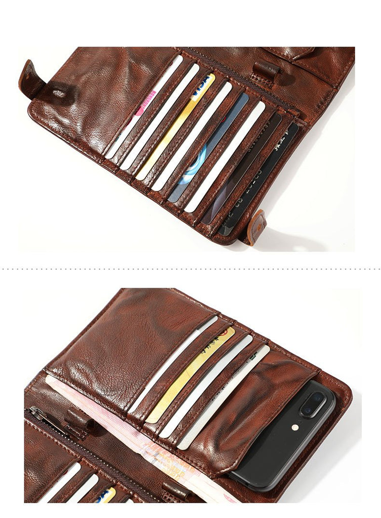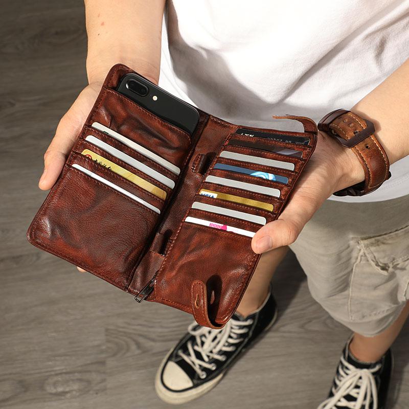 Style: Retro Black Sheepskin Leather Men's Long Wallet Clutch Wallet Brown Phone Wallet Zipper Clutch Wallet For Men