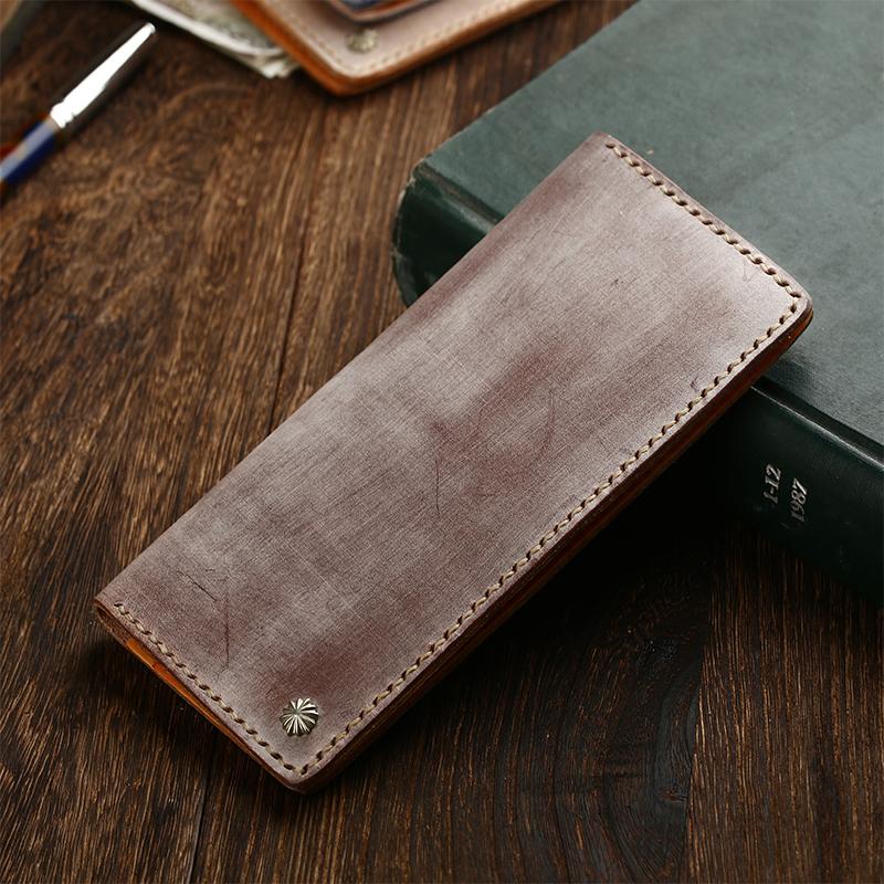 Design: Simple Handmade Mens Brown Slim Long Wallet Blue Bifold Card Wallet Clutch Wallet For Men