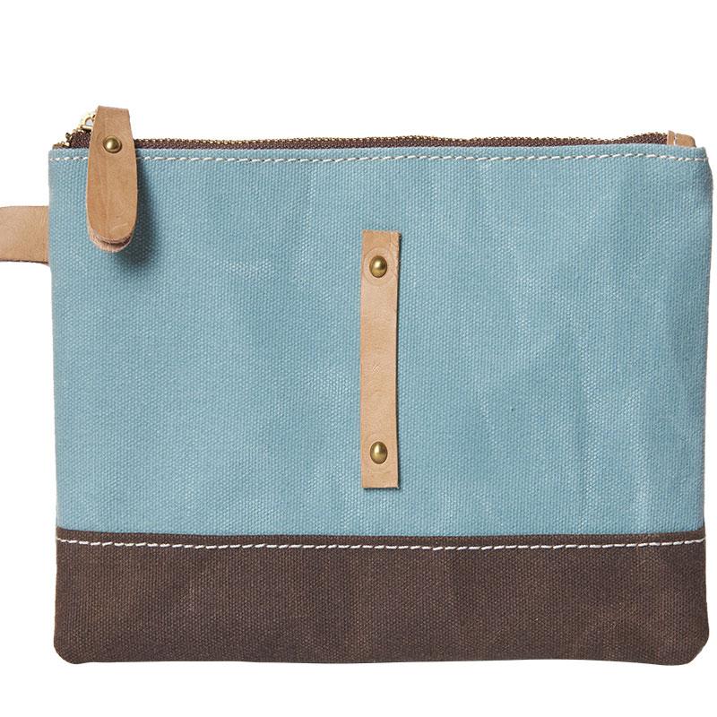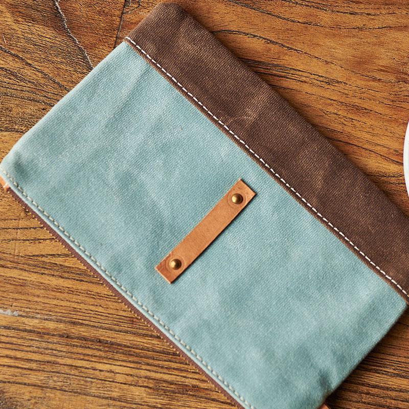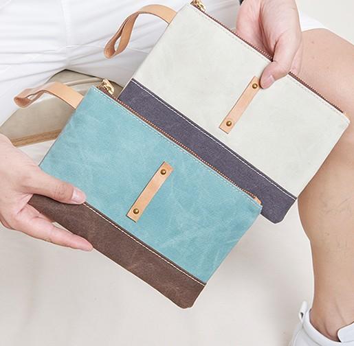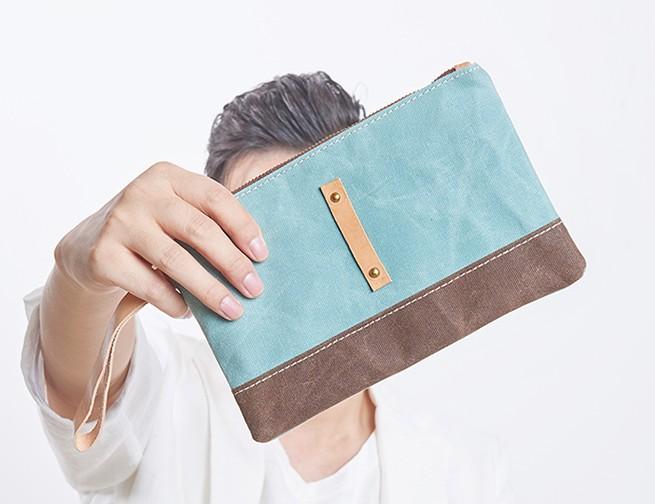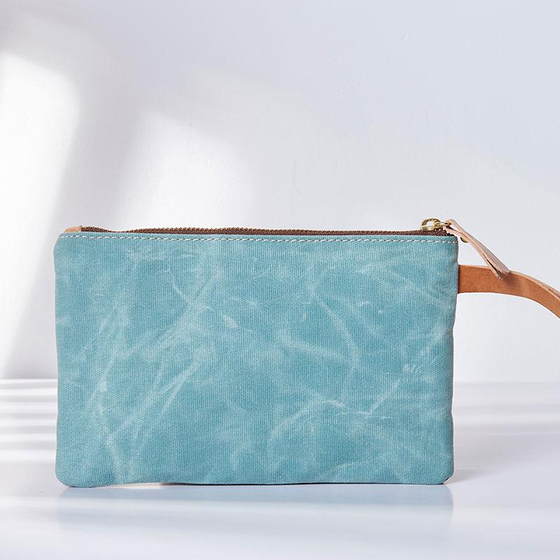 Style: Slim Canvas Leather Mens Clutch Bag Zipper Wristlet Bag Purse for Men Women