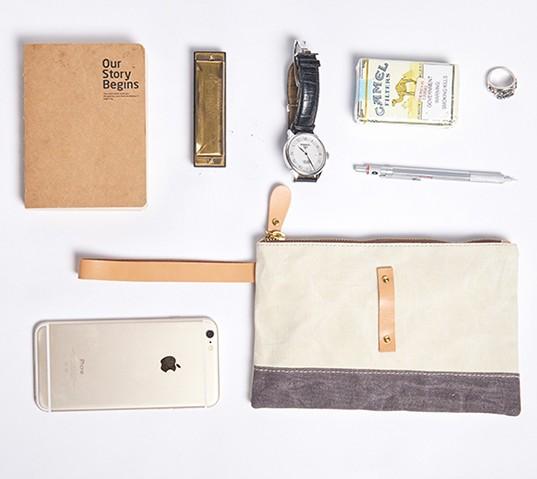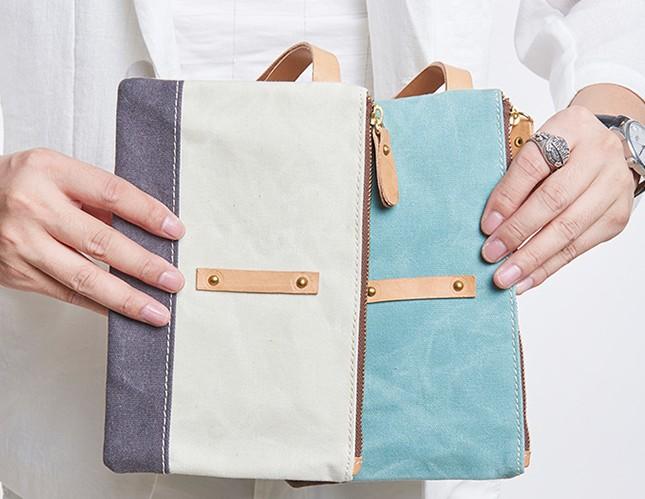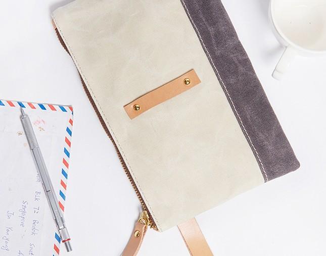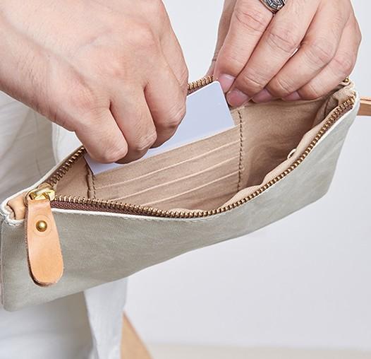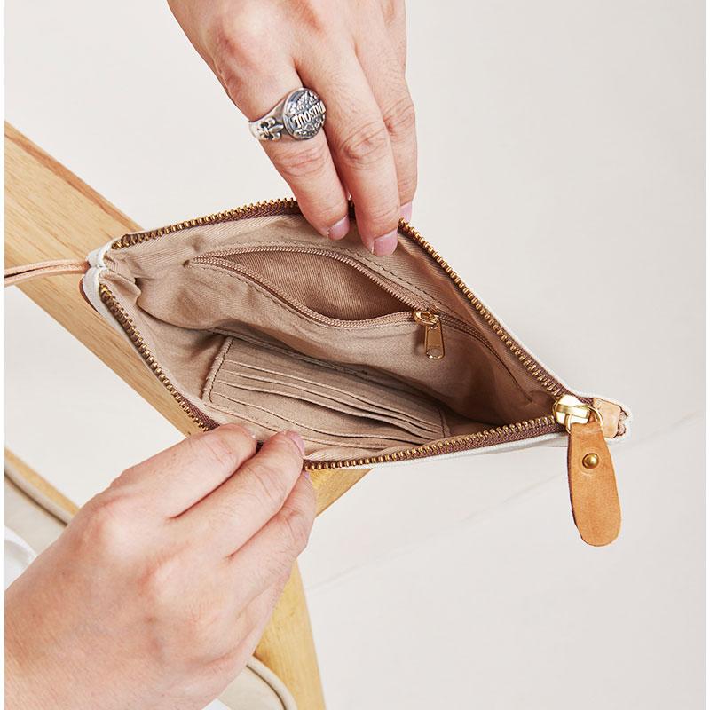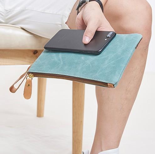 Design: Slim Canvas Leather Mens Clutch Bag Zipper Wristlet Bag Purse for Men Women