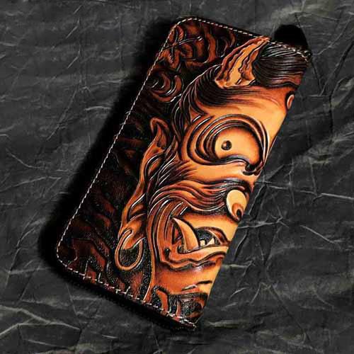 Style: Badass Black Leather Men's Long Biker Handmade Wallet Black Buddha Tooled Zipper Long Wallets For Men