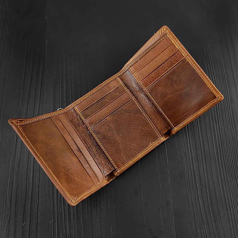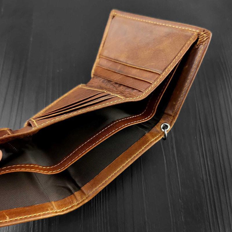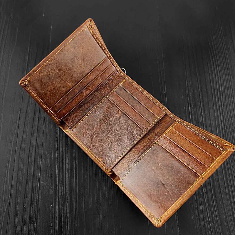 Design: BADASS BROWN LEATHER MENS TRIFOLD SMALL BIKER WALLETS CHAIN WALLET WALLET WITH CHAINS FOR MEN