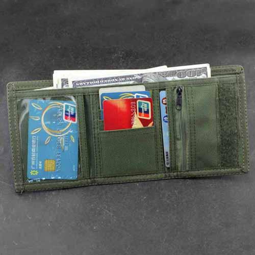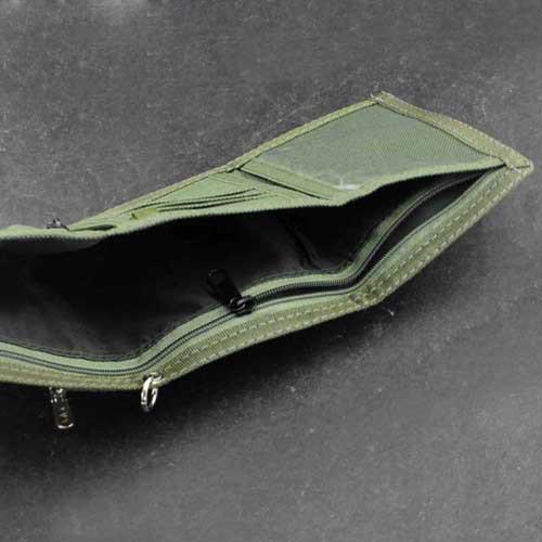Slots: 2 full size bill slot, 5 card holders, 2 zipper slots