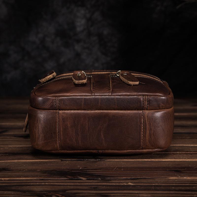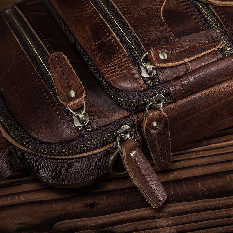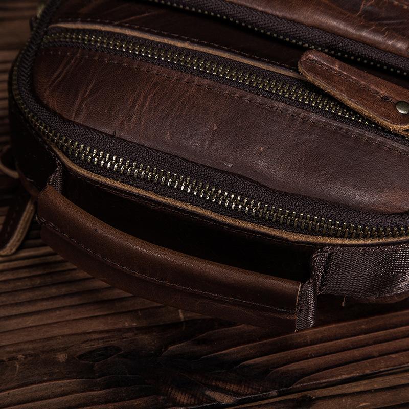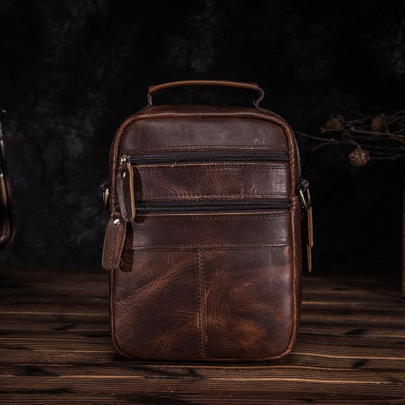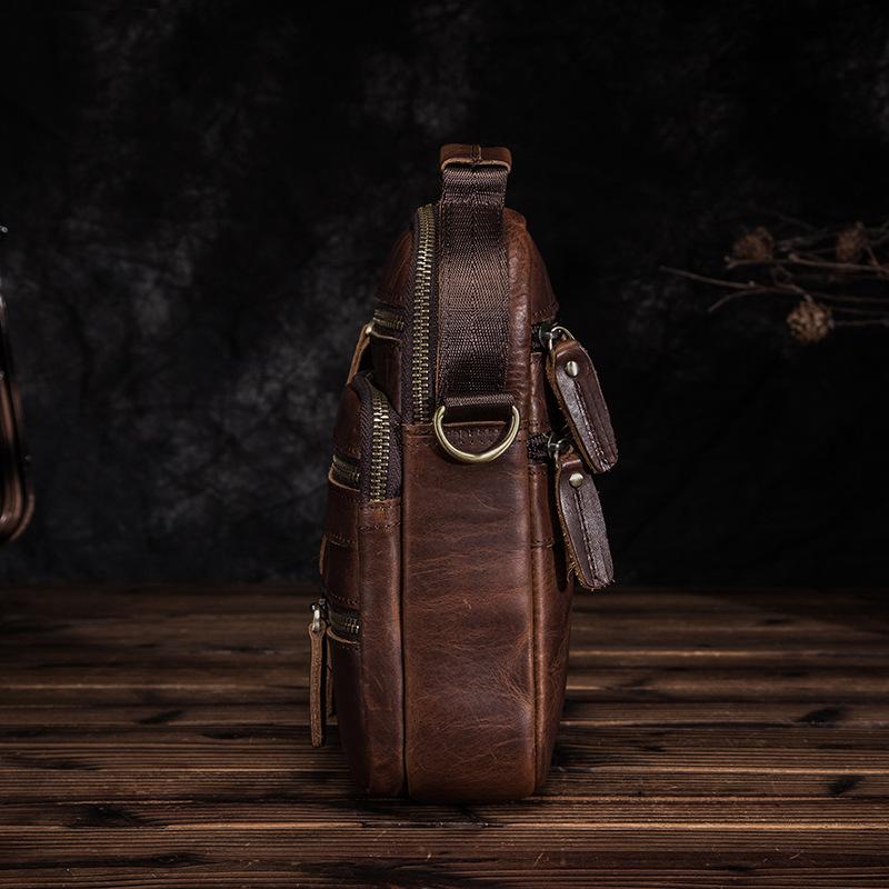 Style: BADASS Dark Brown LEATHER MENS 8 inches Multi-pocket Portable SHOULDER BAG SIDE BAG COURIER BAG MESSENGER BAG FOR MEN