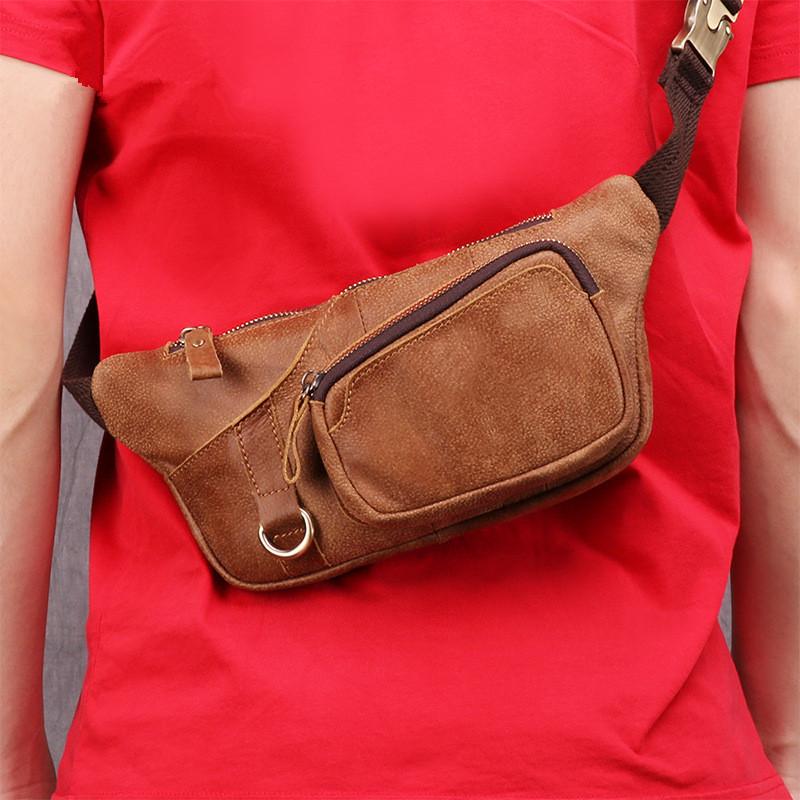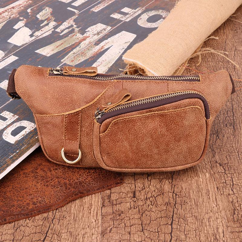 Design: Badass Leather Fanny Pack Men's Brown Chest Bag Hip Bag Waist Bag For Men
