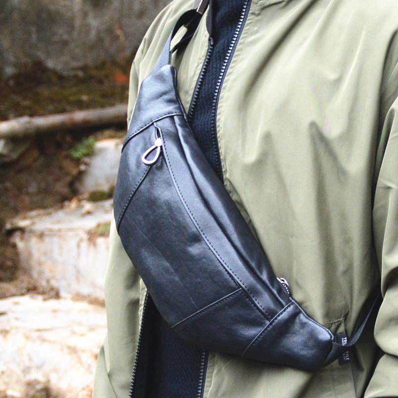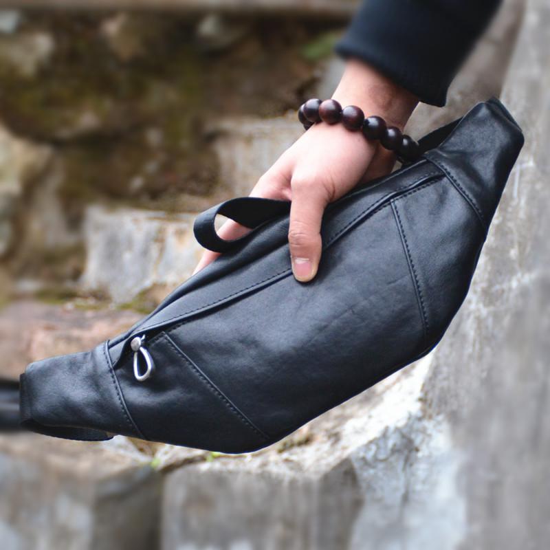 Style: Badass Leather Black Fanny Pack Men's Black Chest Bag Hip Bag Small Waist Bag For Men