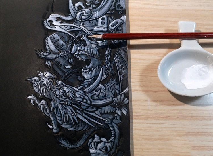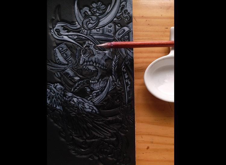 Design: Black Handmade Tooled Indian Chief Skull Leather Mens Long Wallet Bifold Long Wallet For Men