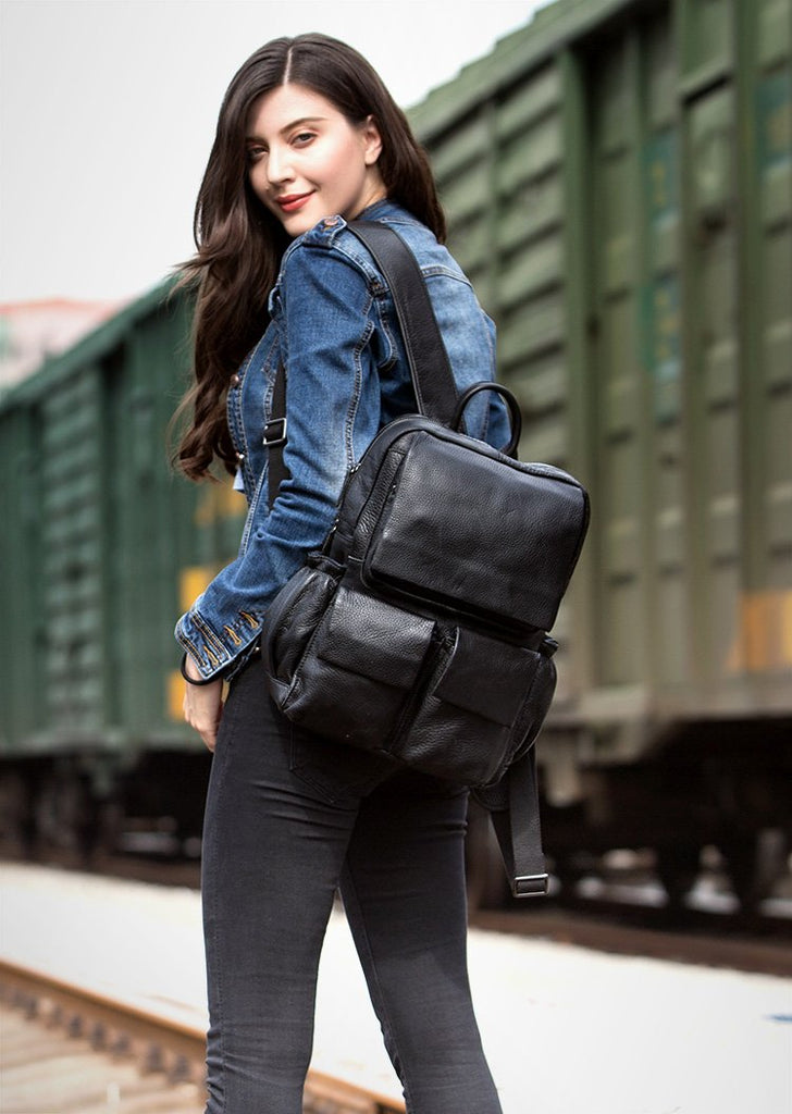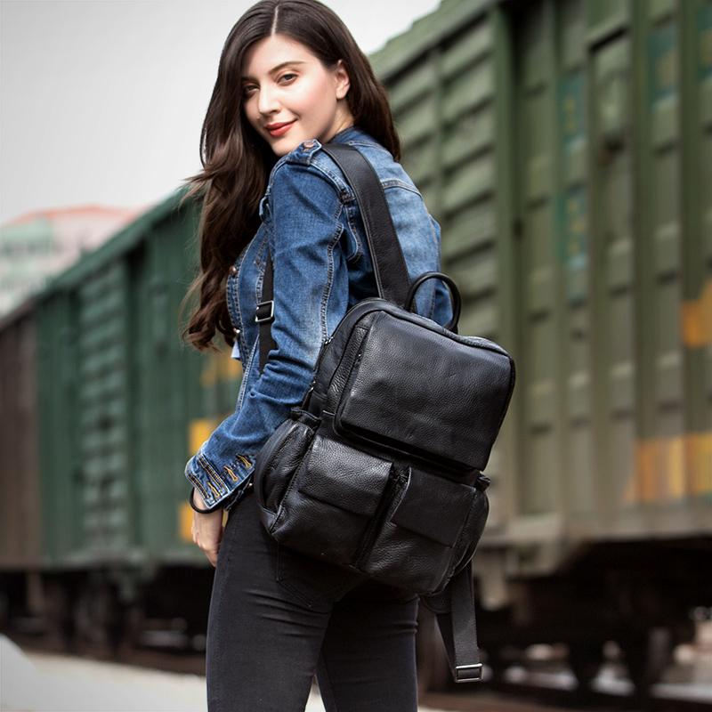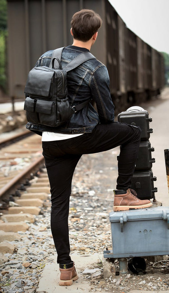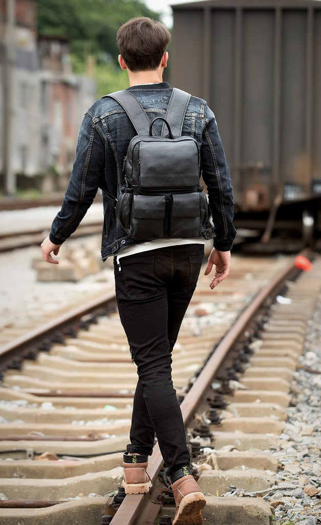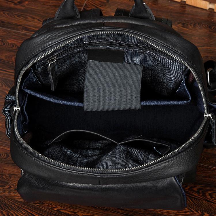 Design: Black Business Mens Leather 14 inches Computer Backpacks Cool Travel Backpacks School Backpack for men