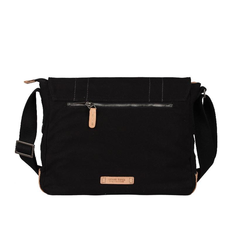 Design: Black Canvas Leather Mens Side Bag Messenger Bags Navy Blue Canvas Courier Bag for Men