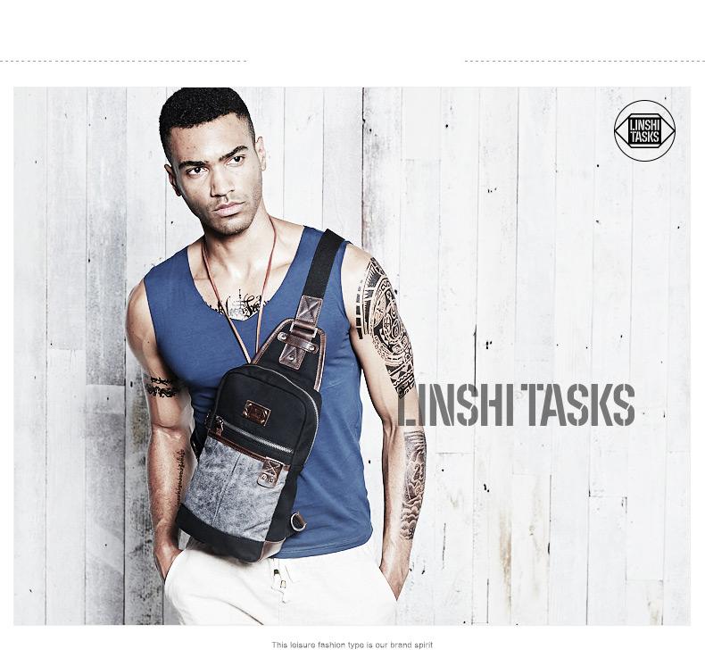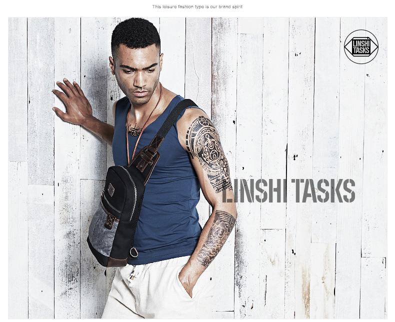 Design: Black Canvas Leather Sling Backpack Men's Sling Bag Chest Bag Dark Brown Canvas One shoulder Backpack For Men