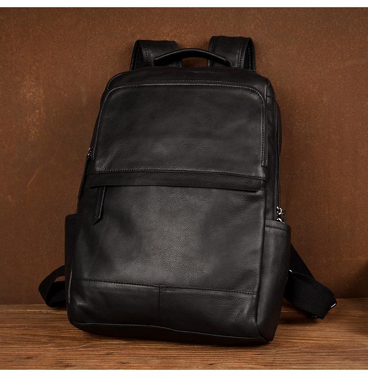 Style: Black Casual Mens Leather 15-inch Computer Backpack Brown Travel Backpacks School Backpacks for men