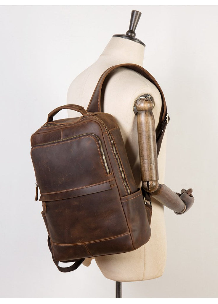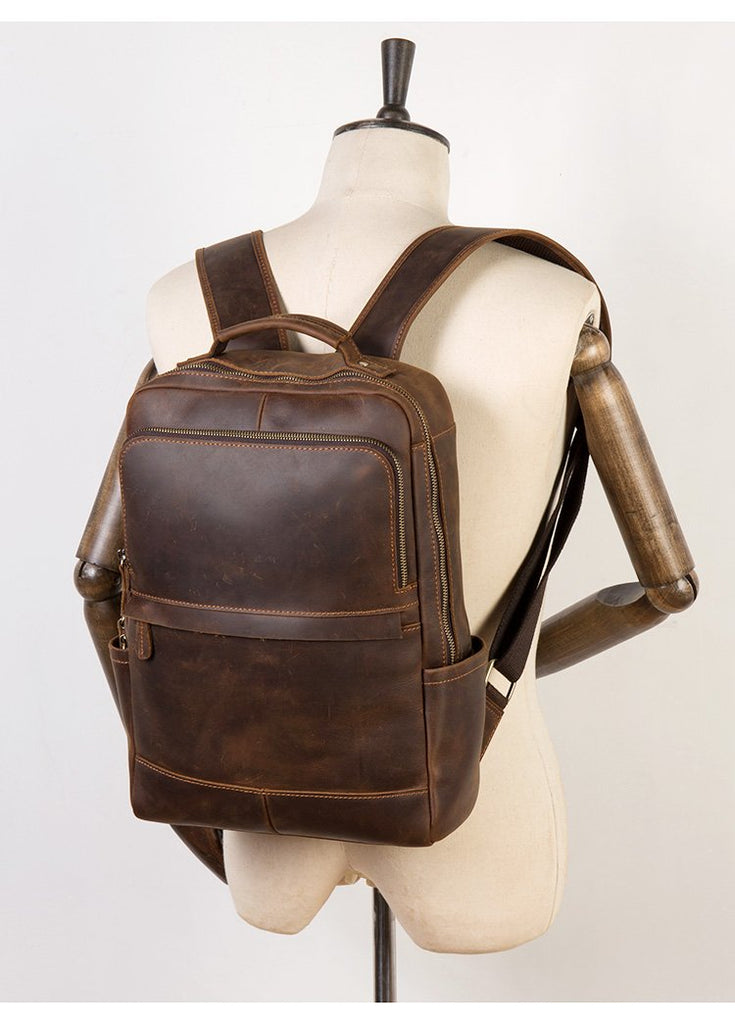 Design: Black Casual Mens Leather 15-inch Computer Backpacks Brown Travel Backpacks School Backpacks for men