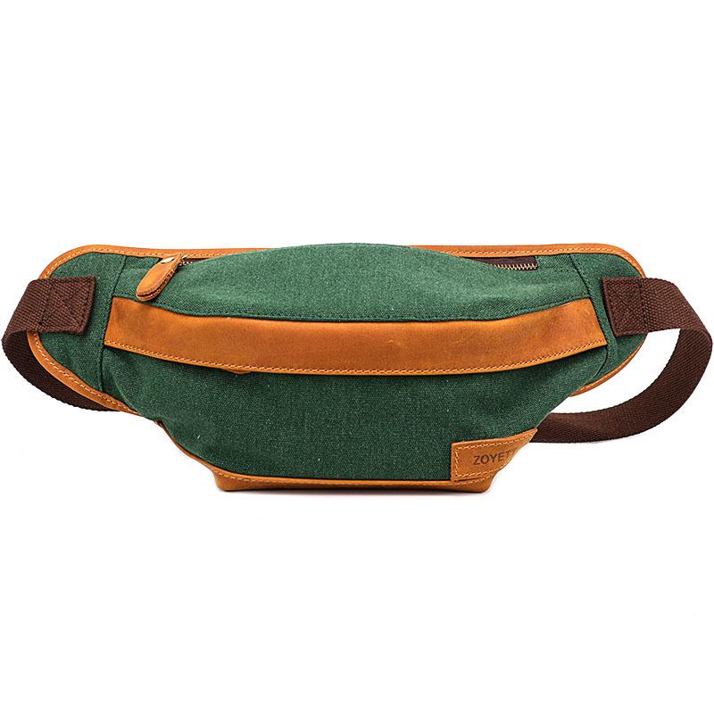 Design: Black Cool Leather Mens Chest Bag Green Waist Bag Fanny Pack Hip Bag Bum Pack For Men
