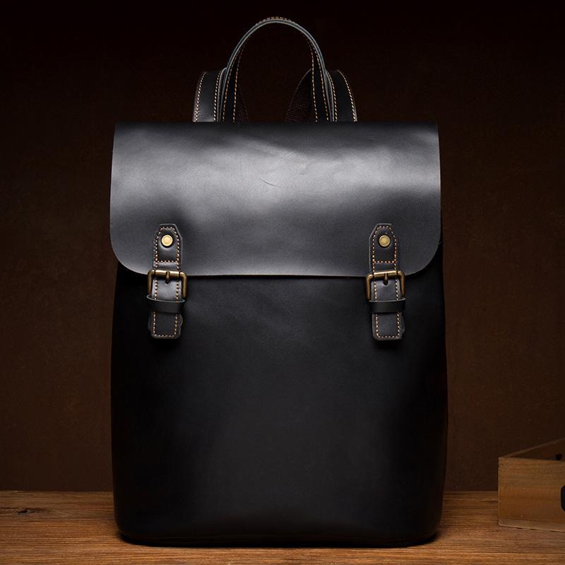 Style: Black Fashion Mens Leather 15-inch Computer Backpack Brown Travel Backpacks School Backpacks for men