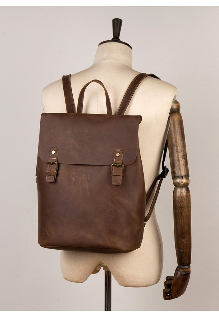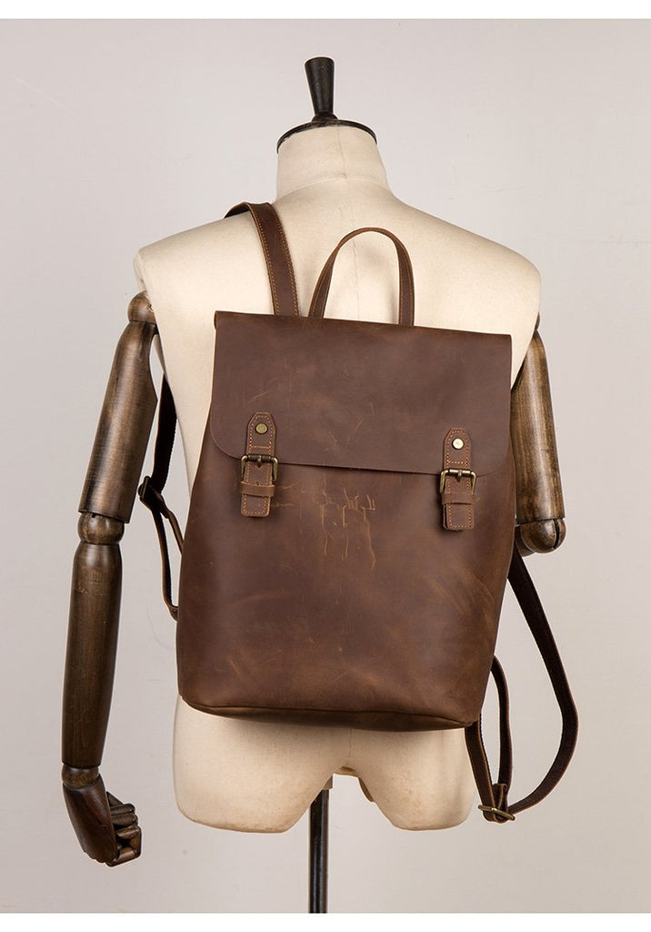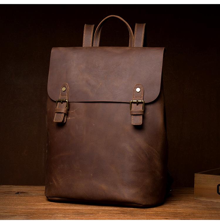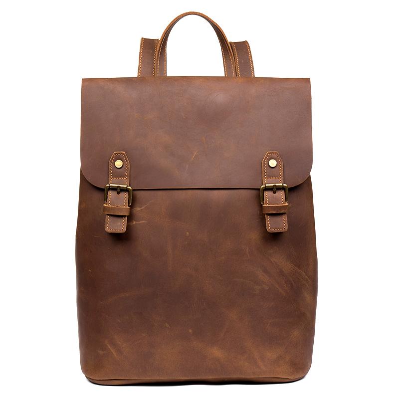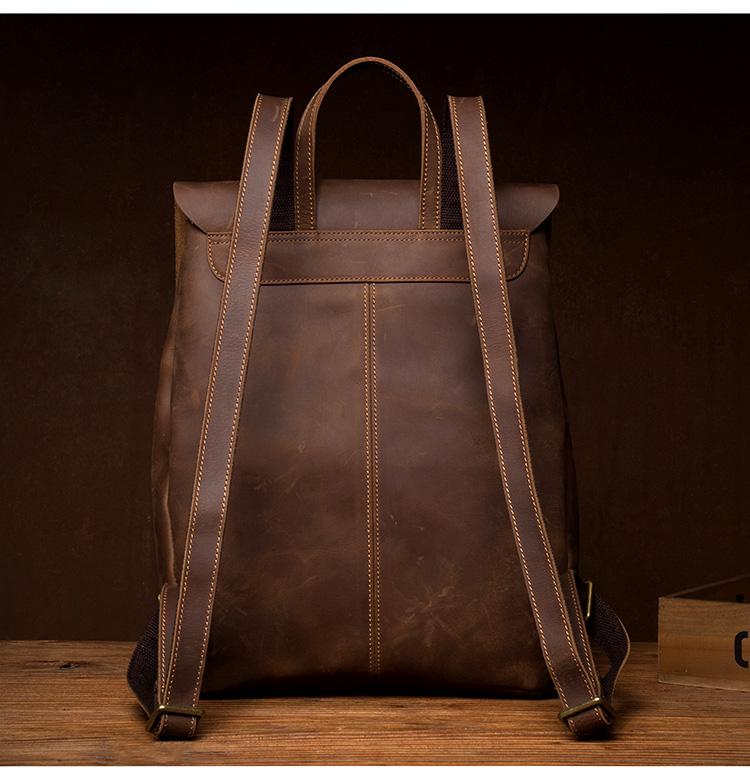 Design: Black Fashion Mens Leather 15-inch Computer Backpack Brown Travel Backpacks School Backpacks for men