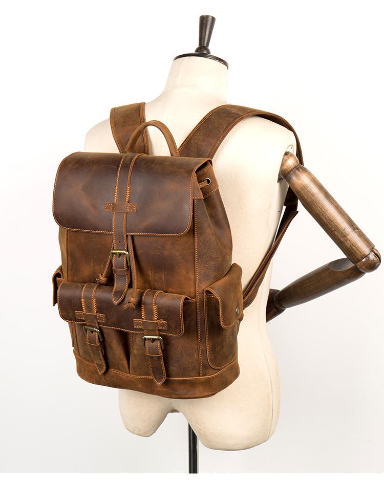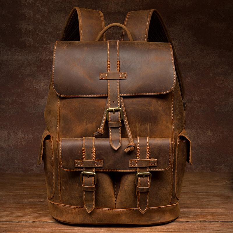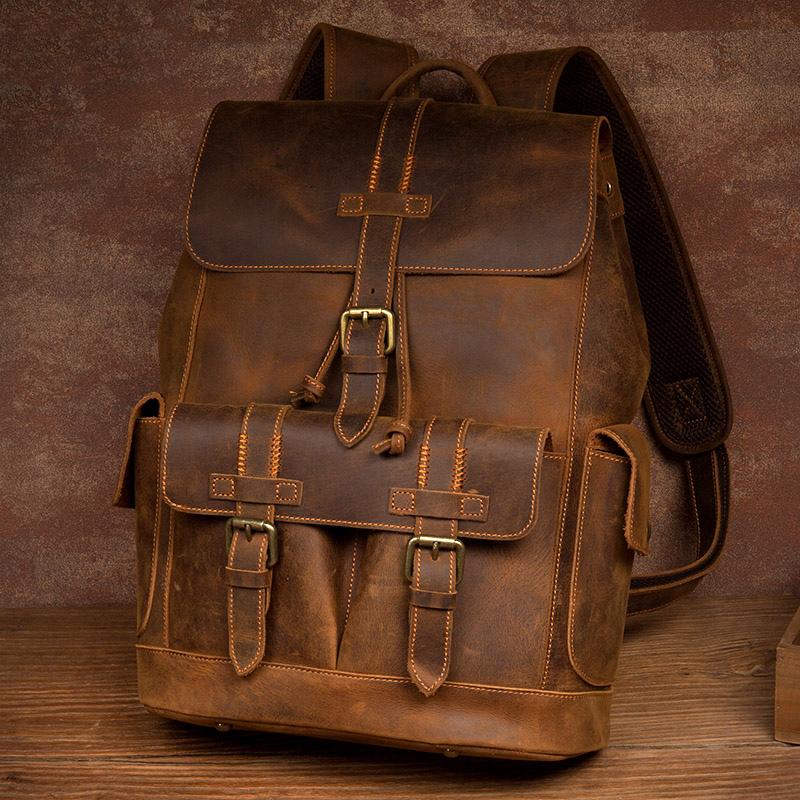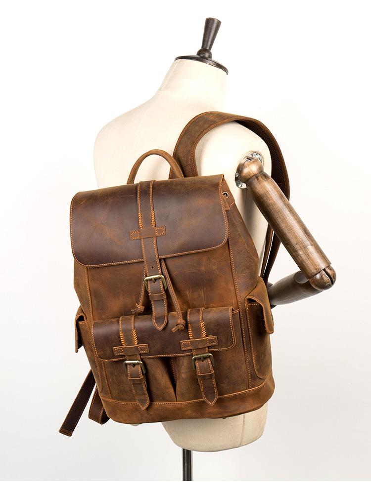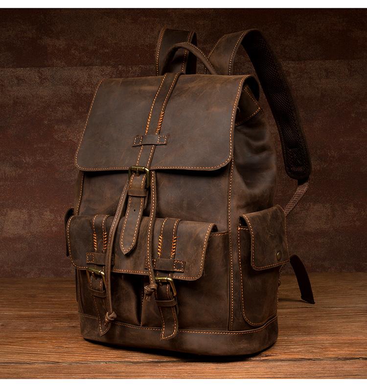 Design: Black Fashion Mens Leather 13-inch Computer Backpacks Travel Backpacks School Backpacks for men