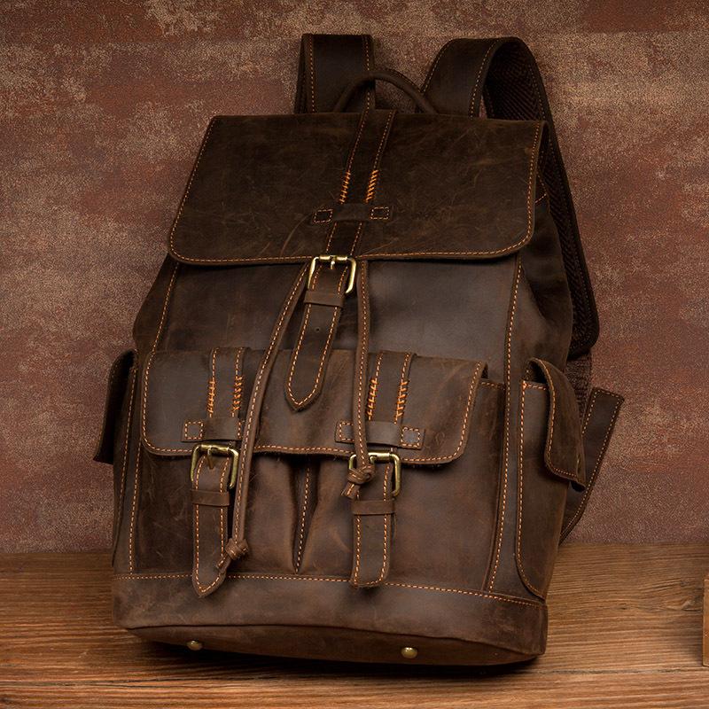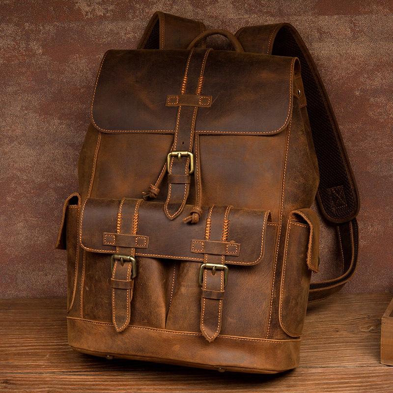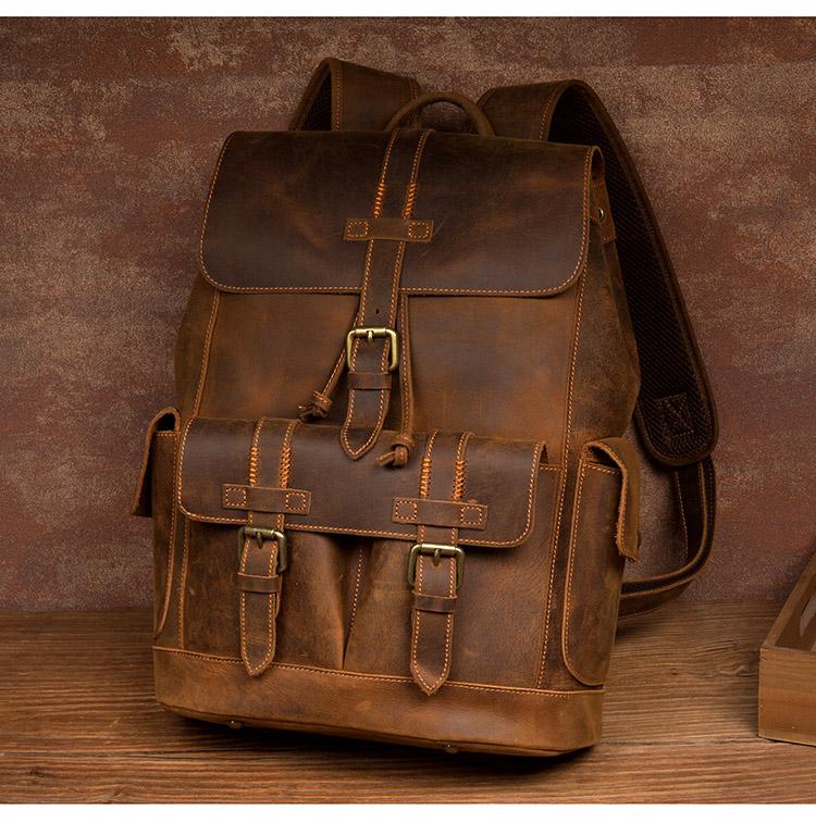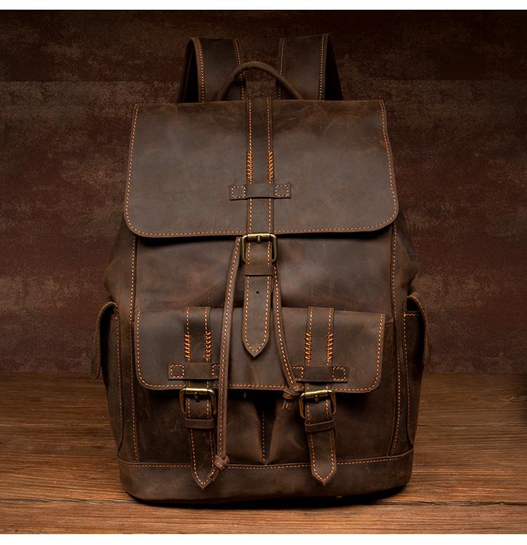 Style: Black Fashion Mens Leather 13-inch Computer Backpacks Travel Backpacks School Backpacks for men