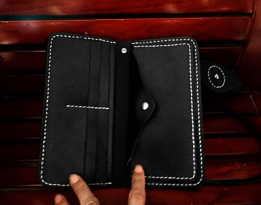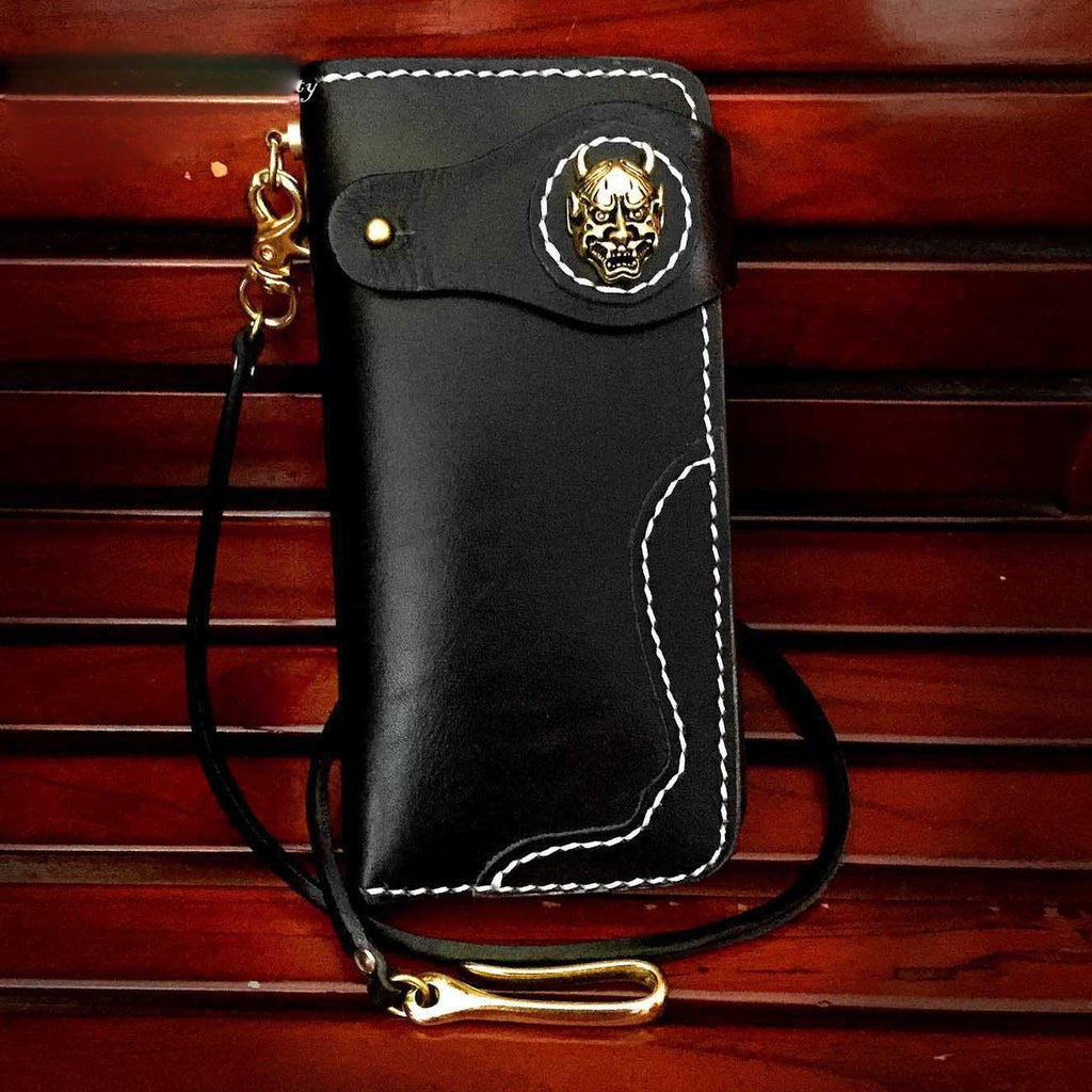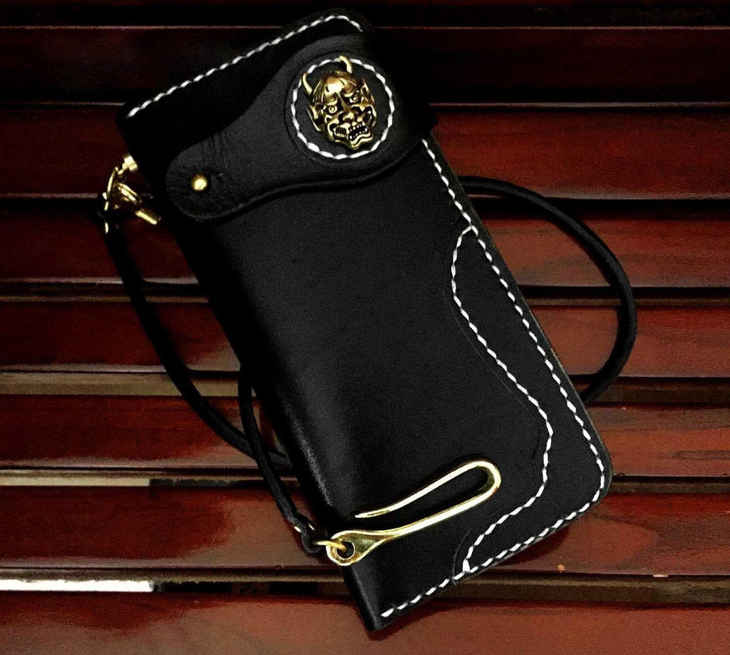 Style: Handmade Black Leather Men's Long Biker Wallet Chain Wallet Long Biker Chain Wallet For Men