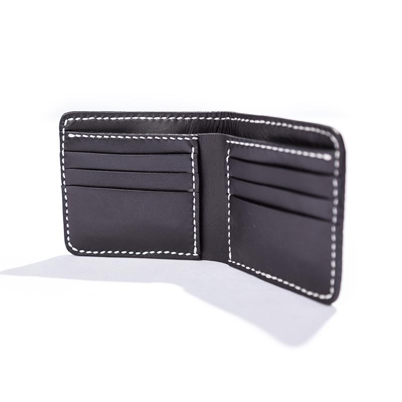 Design: Black Handmade Leather Mens billfold Wallet Bifold Card Wallets Coin Purse For Men