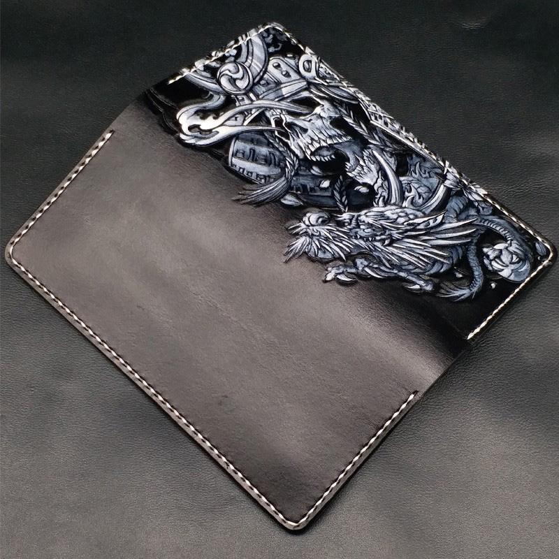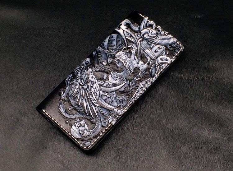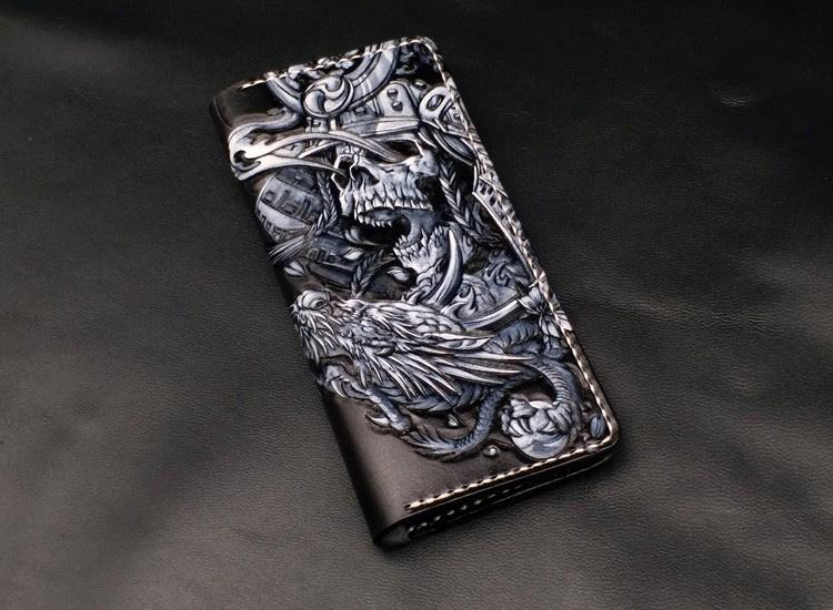 Style: Black Handmade Tooled Indian Chief Skull Leather Mens Long Wallet Bifold Long Wallet For Men