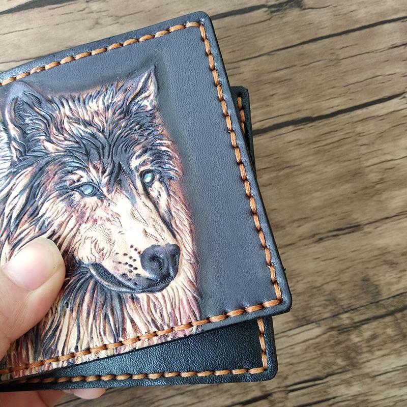 Style: Handmade Wolf Black Tooled Leather billfold Wallet Small Wallet Cool Wallet For Men