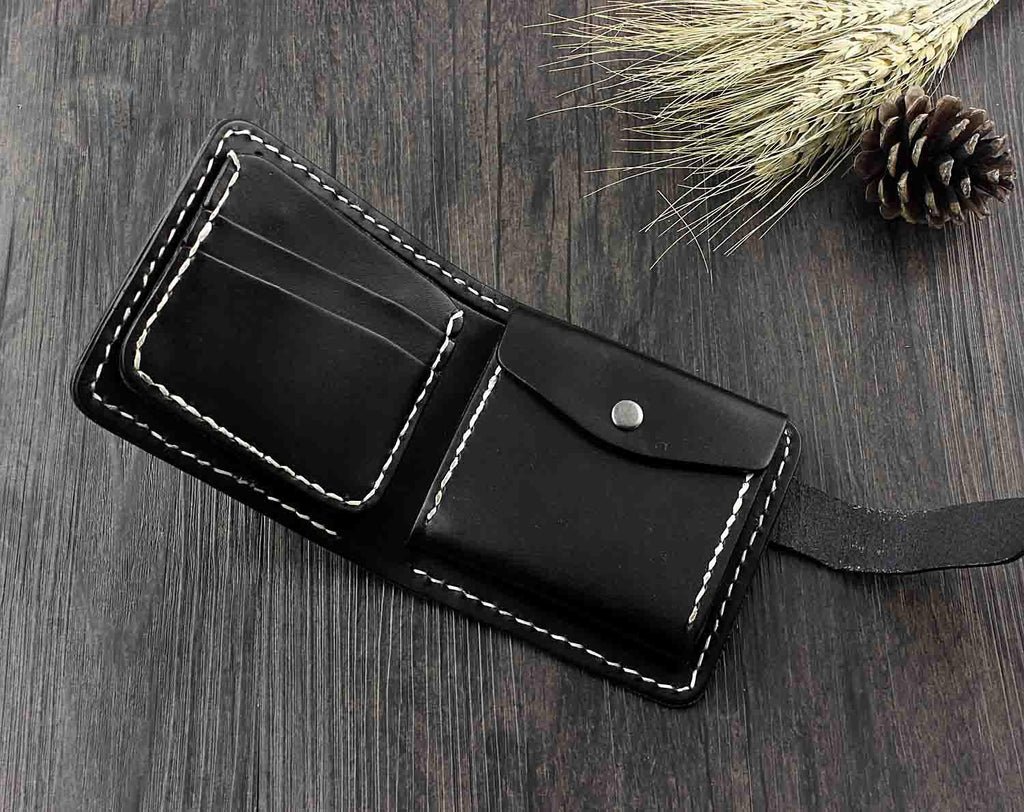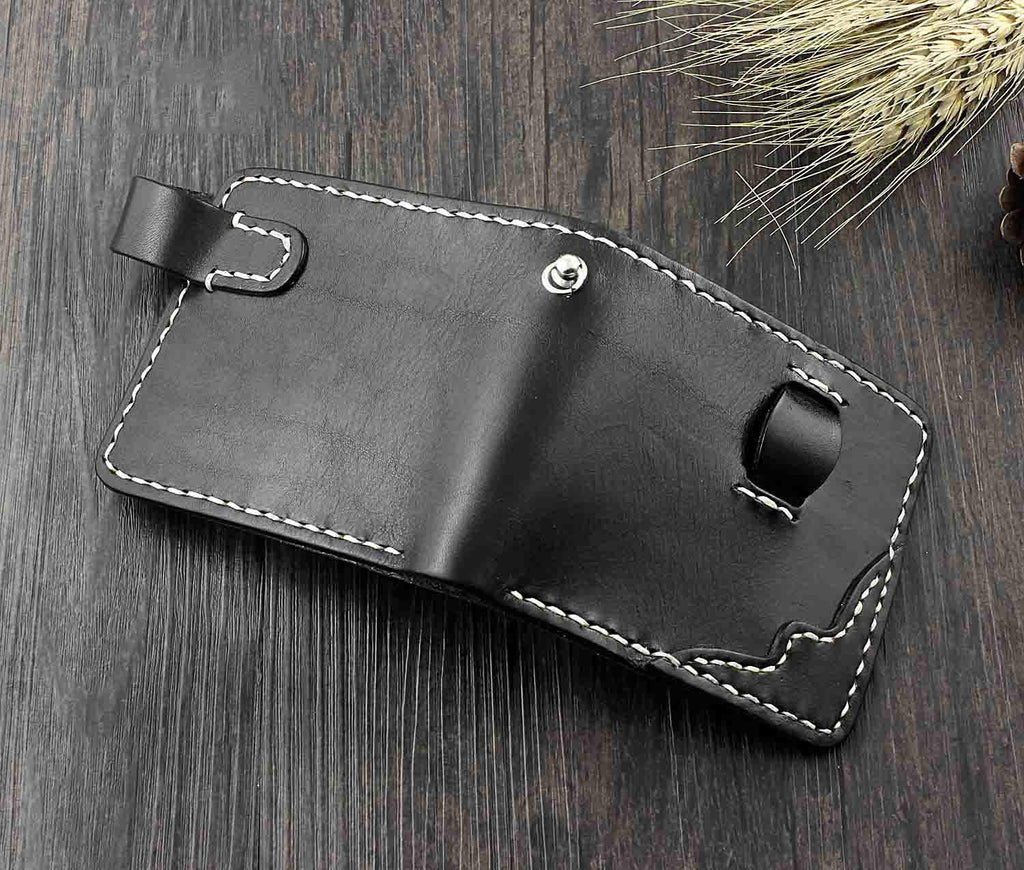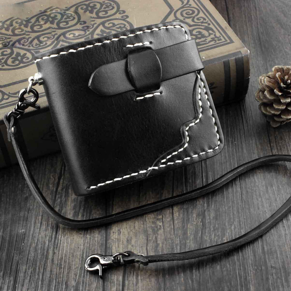 Style: Handmade Black Leather Men's Small Biker Wallet Chain Wallet Short Wallet with Chain For Men