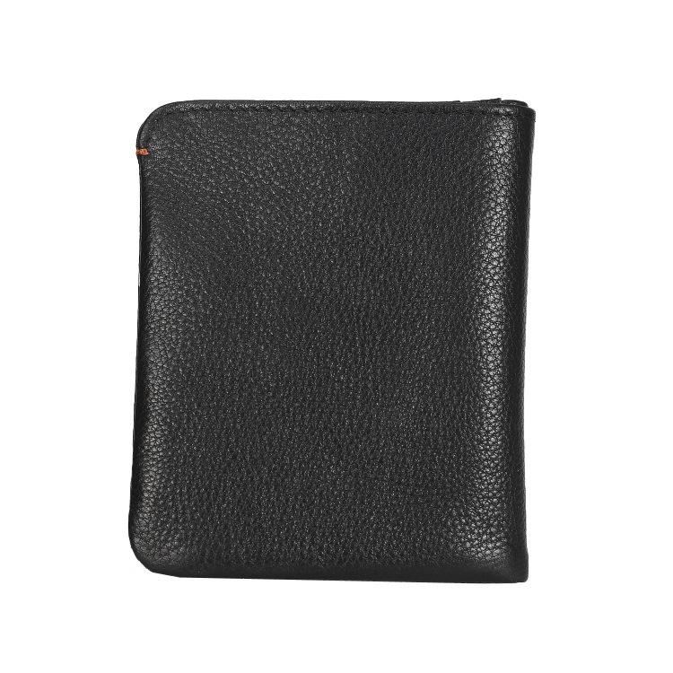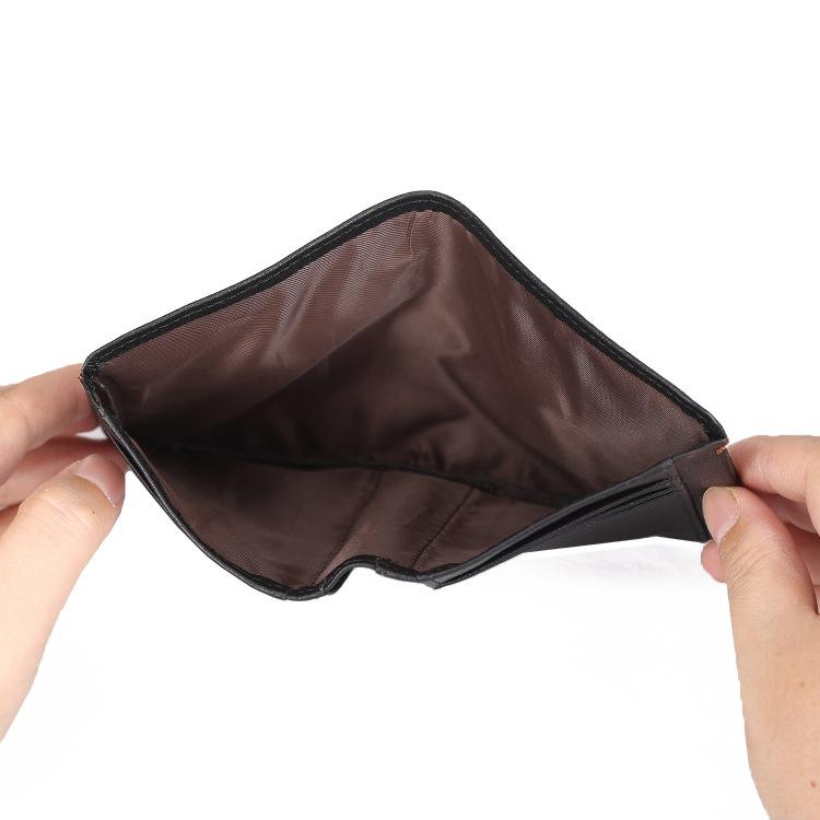 Design: Black Leather Men's Bifold Long Wallet with Dark Brown Coin Pocket Billfold Wallet Card Wallet For Men