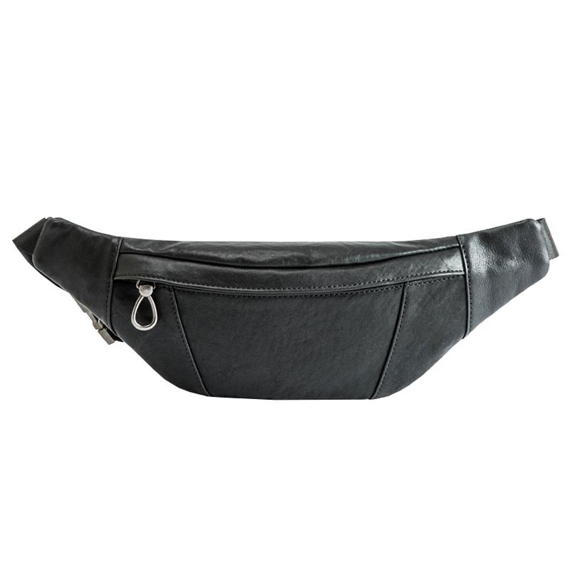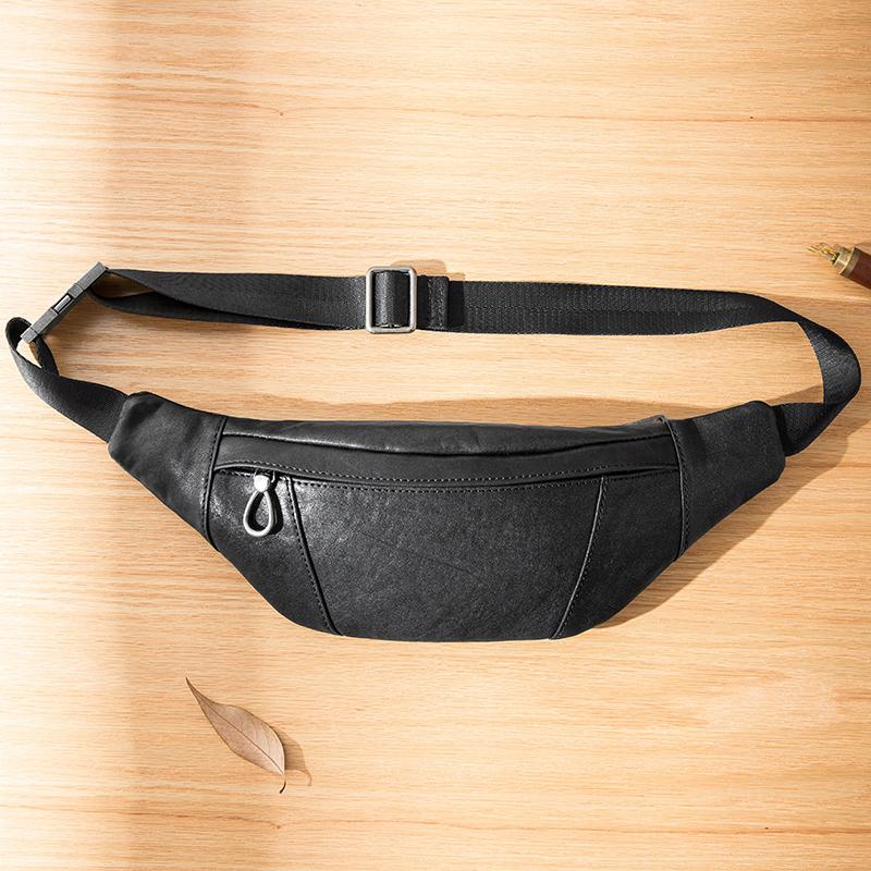 Design: Black Simple Leather Mens 8 inches Chest Bag Shoulder Bag Black Messenger Bags Side Bag for Men
