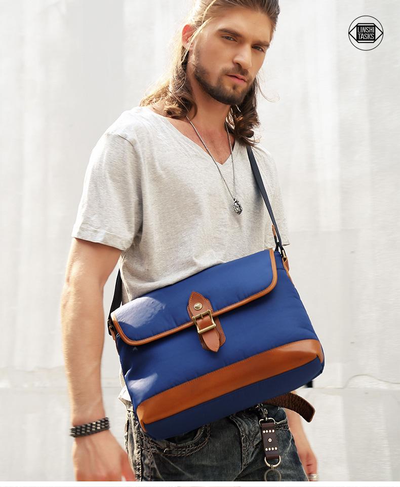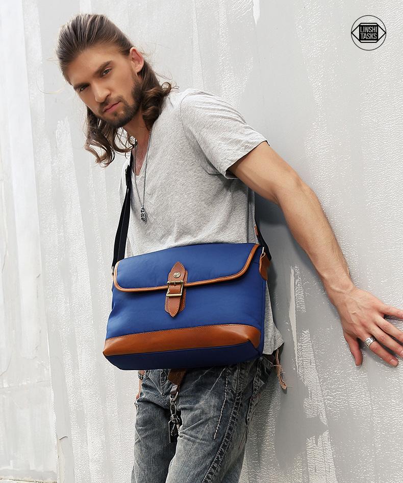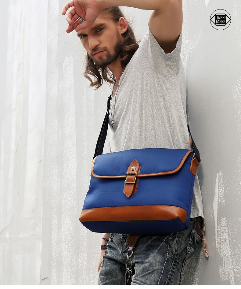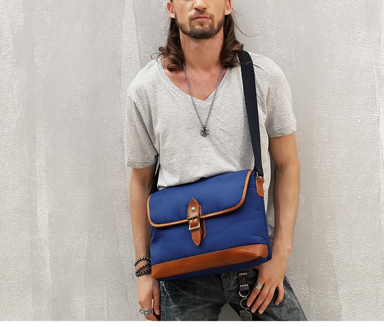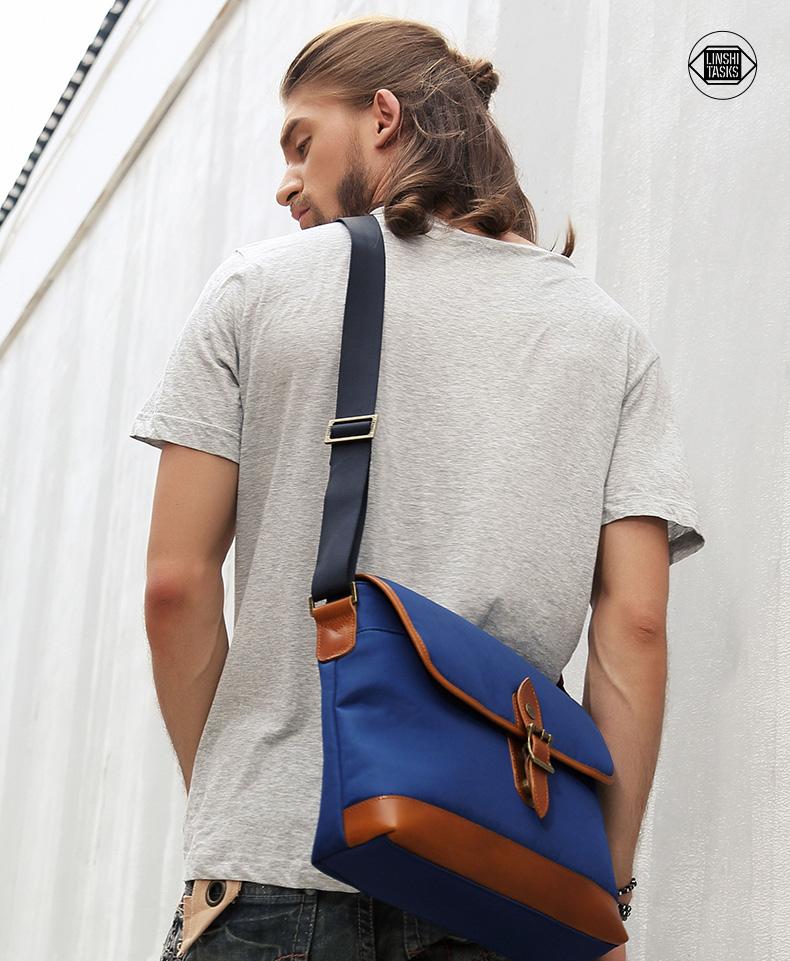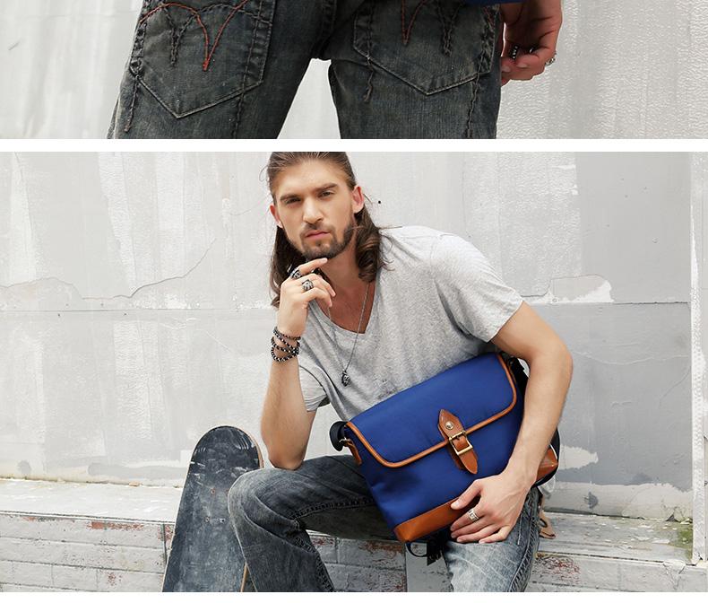 Design: Blue Canvas Mens Casual Side Bag Side Bag Small Messenger Bags Casual Courier Bags for Men