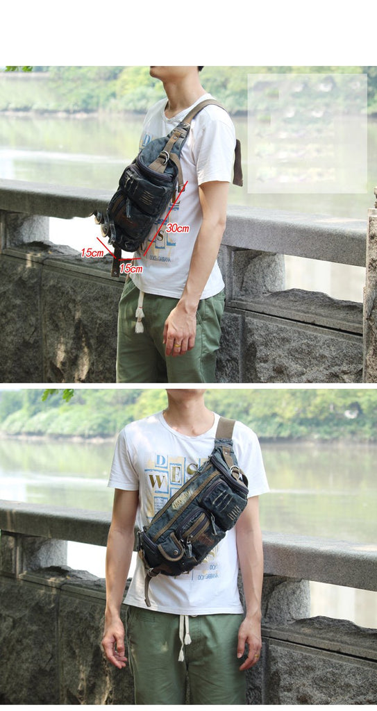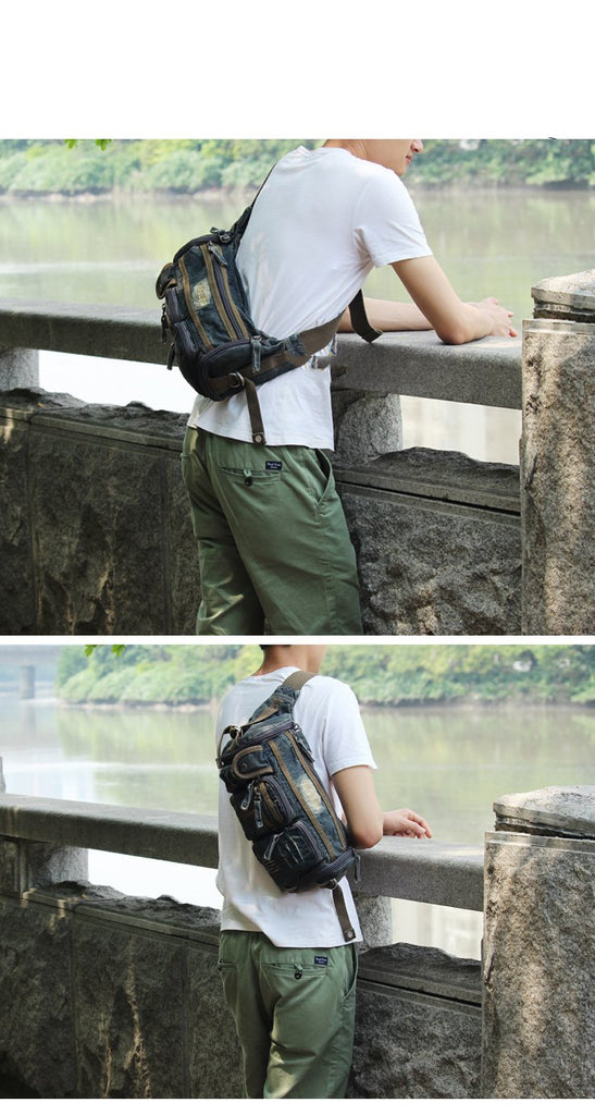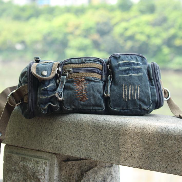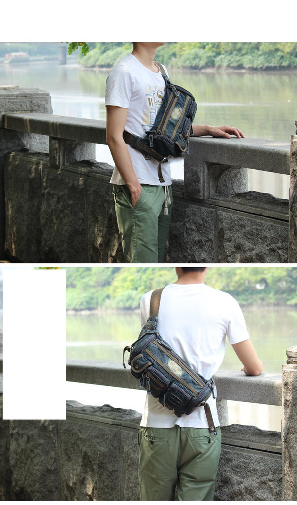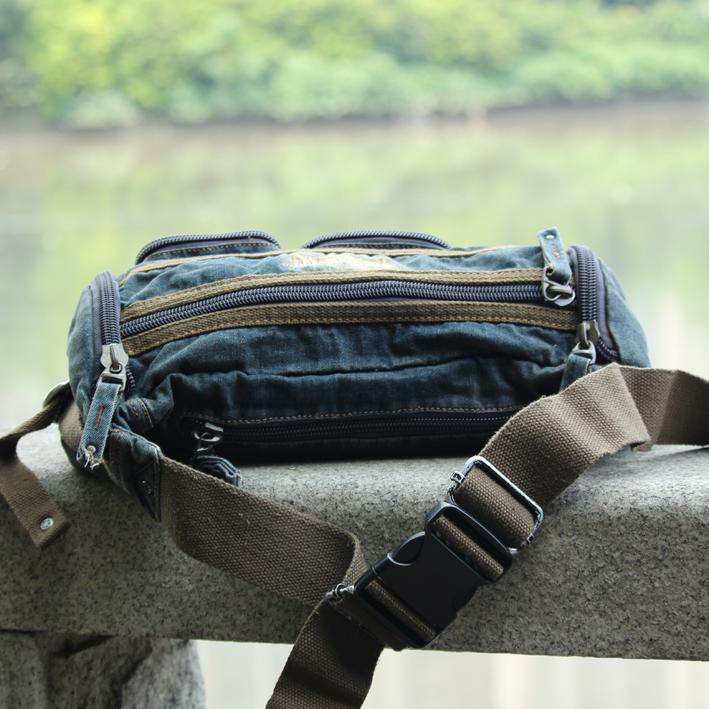 Style: Blue Denim Mens Casual Waist Bag Fanny Pack Blue Jean Hip Bag Bum Bags For Men