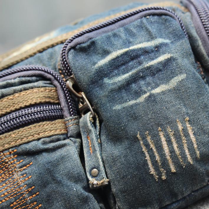 Design: Blue Denim Mens Casual Waist Bag Fanny Pack Blue Jean Hip Bag Bum Bags For Men