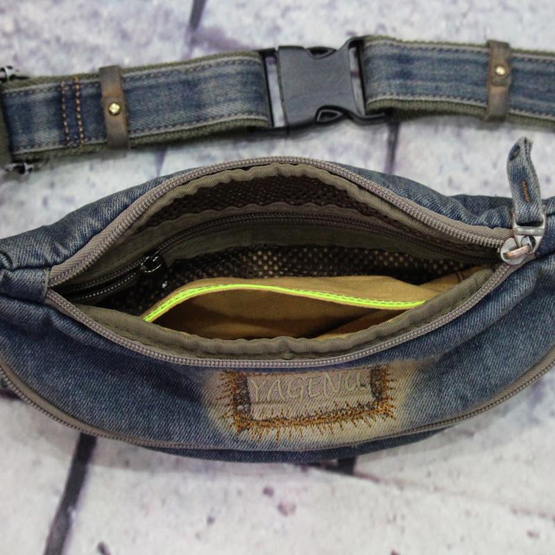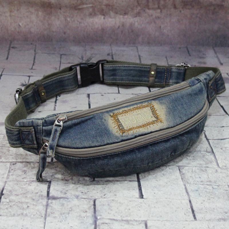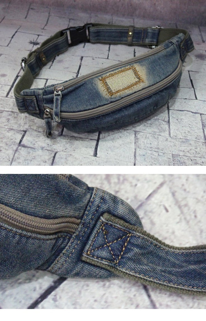 Blue Denim Mens Casual Waist Bag Fanny Pack Blue Jean Hip Bag Bum Bag For Men
