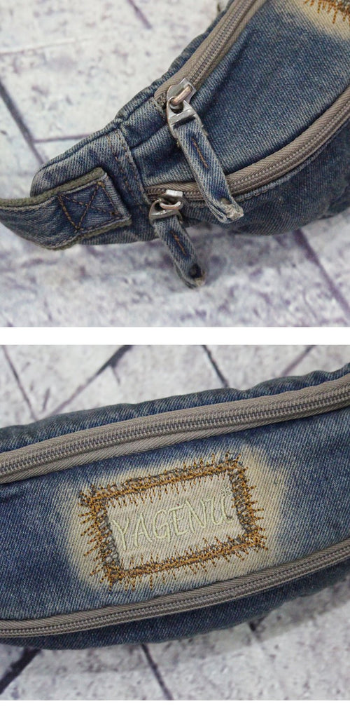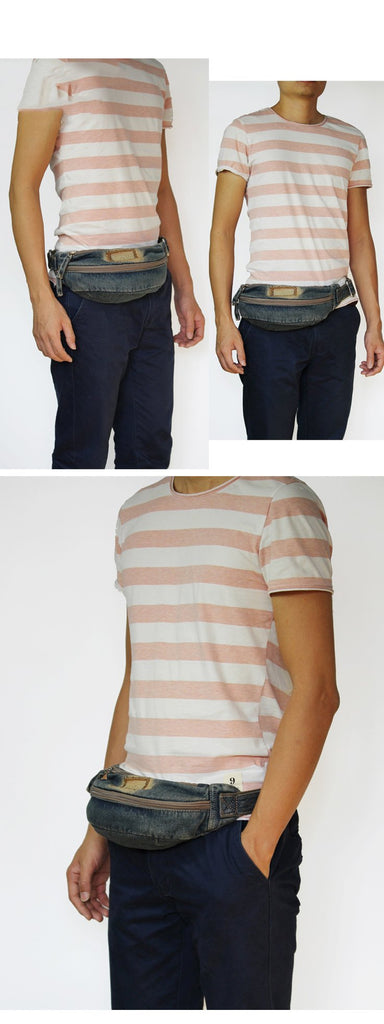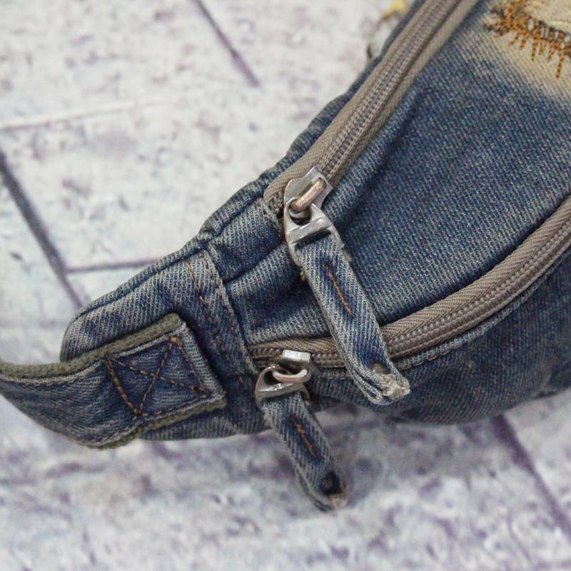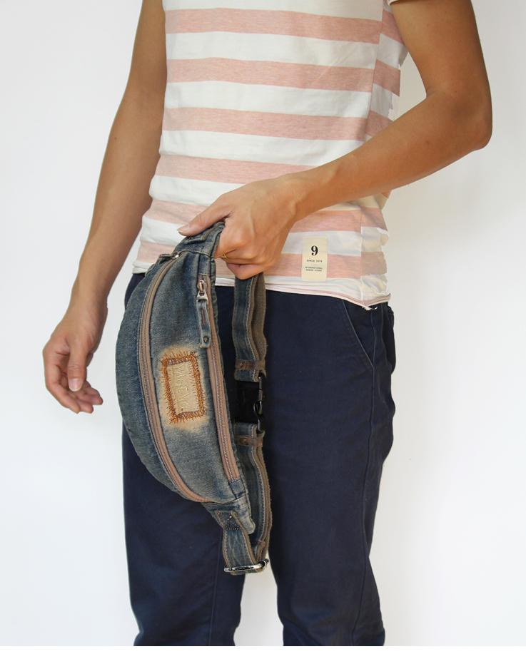 Design: Blue Denim Mens Casual Waist Bag Fanny Pack Blue Jean Hip Bag Bum Bag For Men