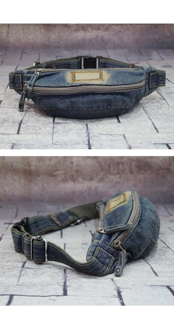Style: Blue Denim Mens Casual Waist Bag Fanny Pack Blue Jean Hip Bag Bum Bag For Men
