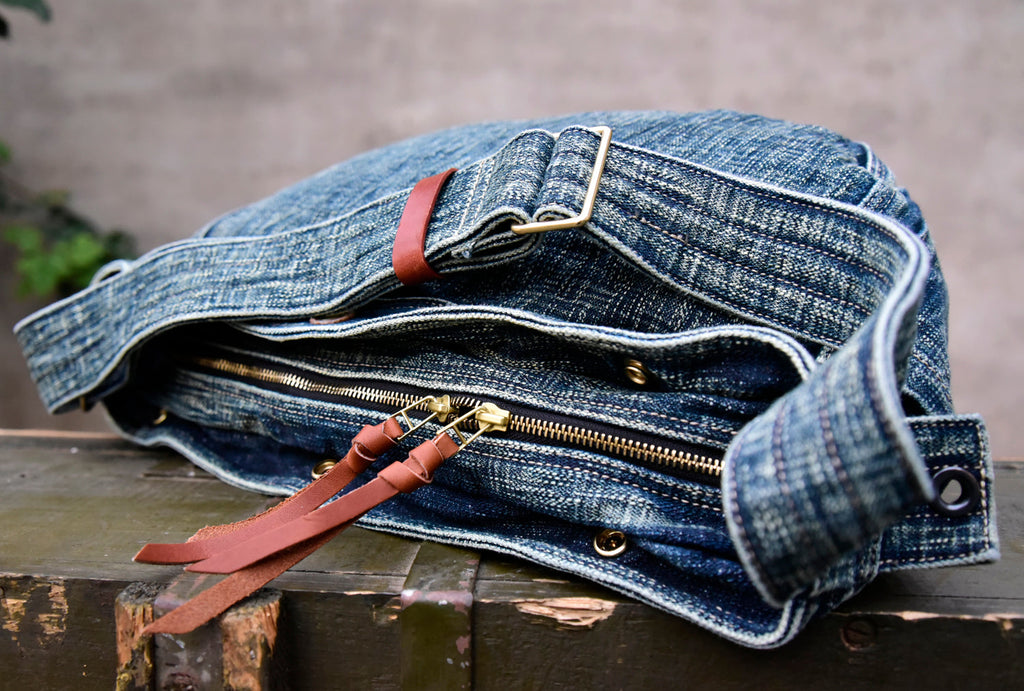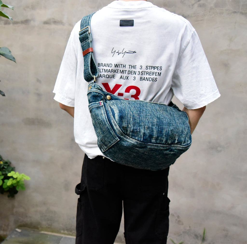 Design: Large Denim Crossbody Bag for Men Washed Distressed Womens Large Jeans Shoulder Bag Blue Denim Messnger Bag