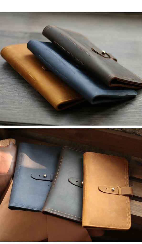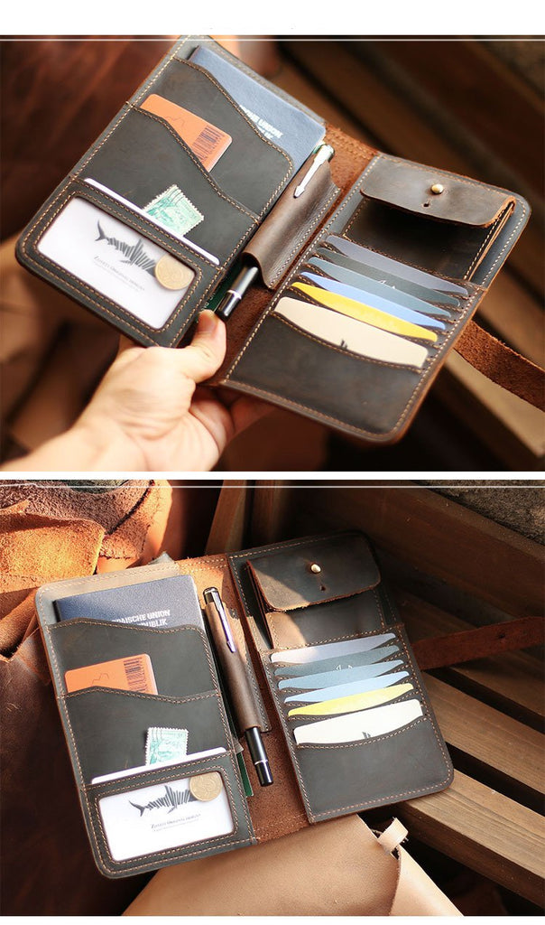 Style: Blue Handmade Leather Mens Passport Holder Muticard Wallet Ticket Holder For Men