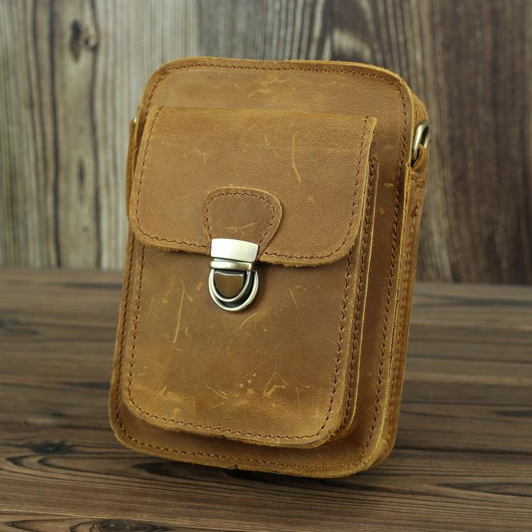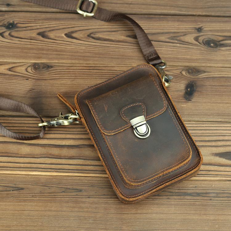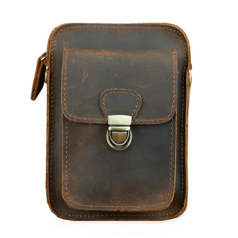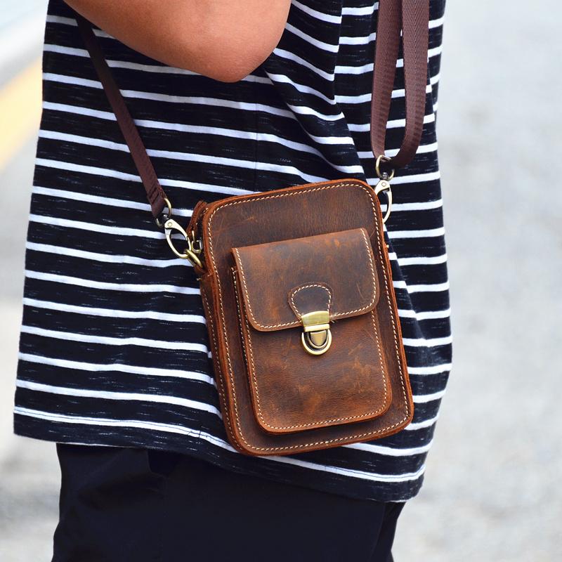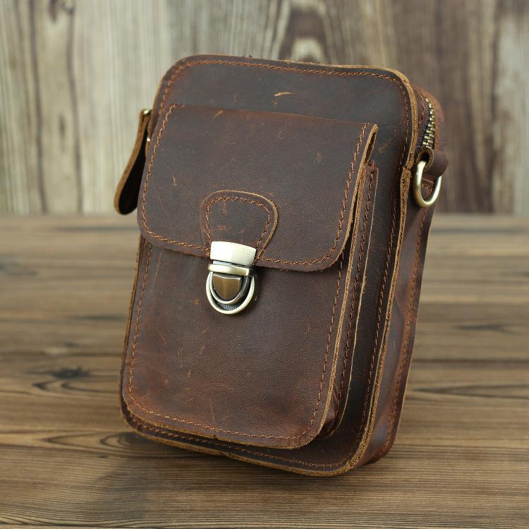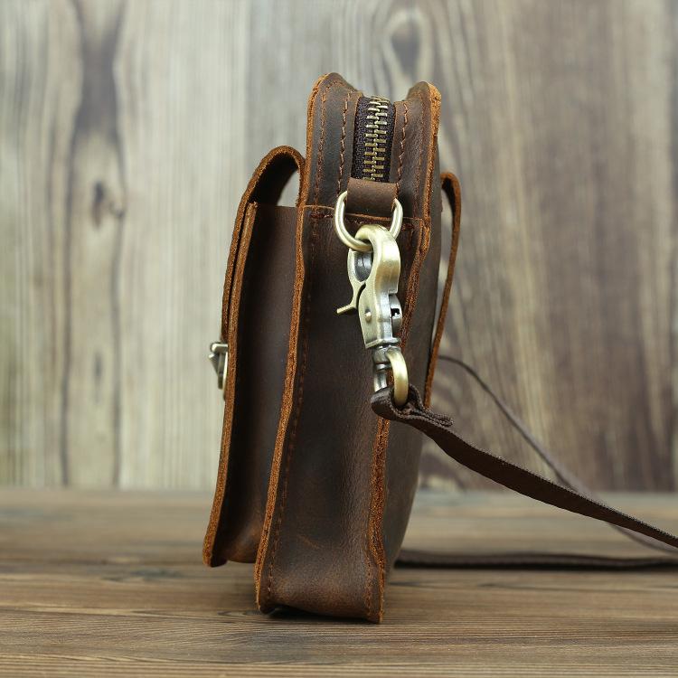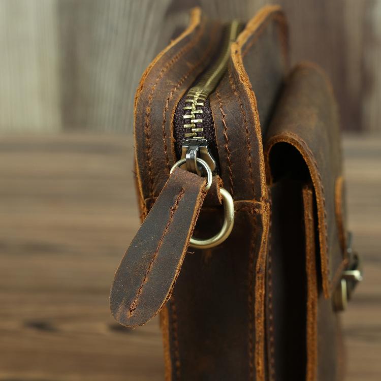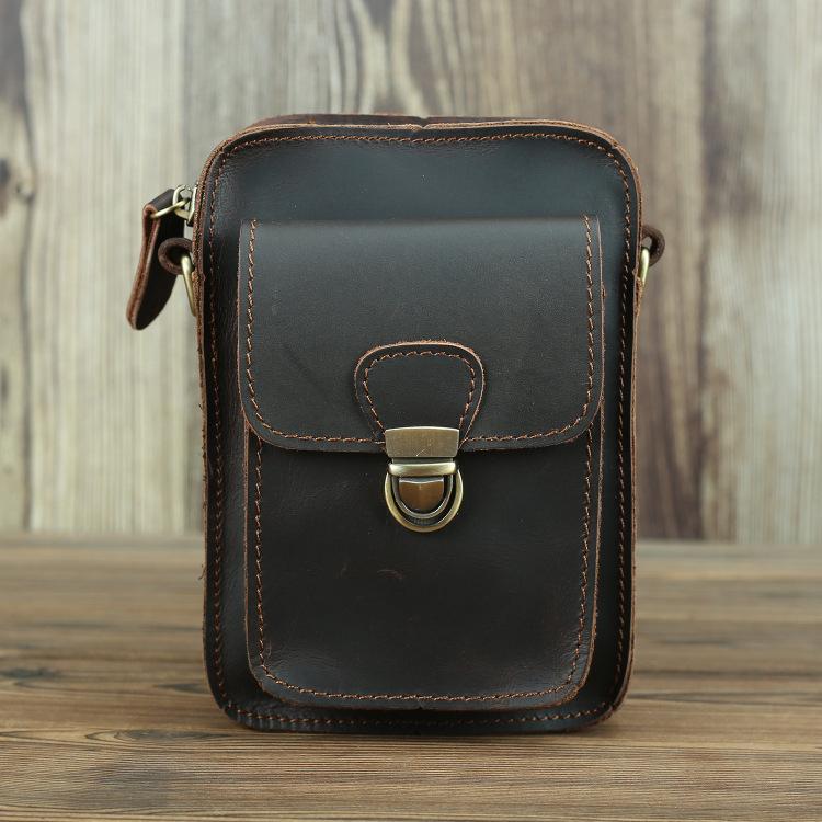 Design: Brown Cool Leather Men Vintage Coffee Messenger Bag Dark Brown Shoulder Bags Side Bag for Men
