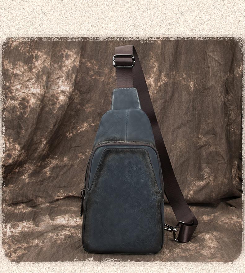Design: Brown Cool LEATHER MENS 8 inches Tan Sling Bags One Shoulder Backpack Blue Chest Bag For Men