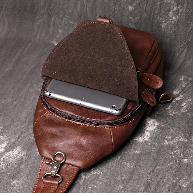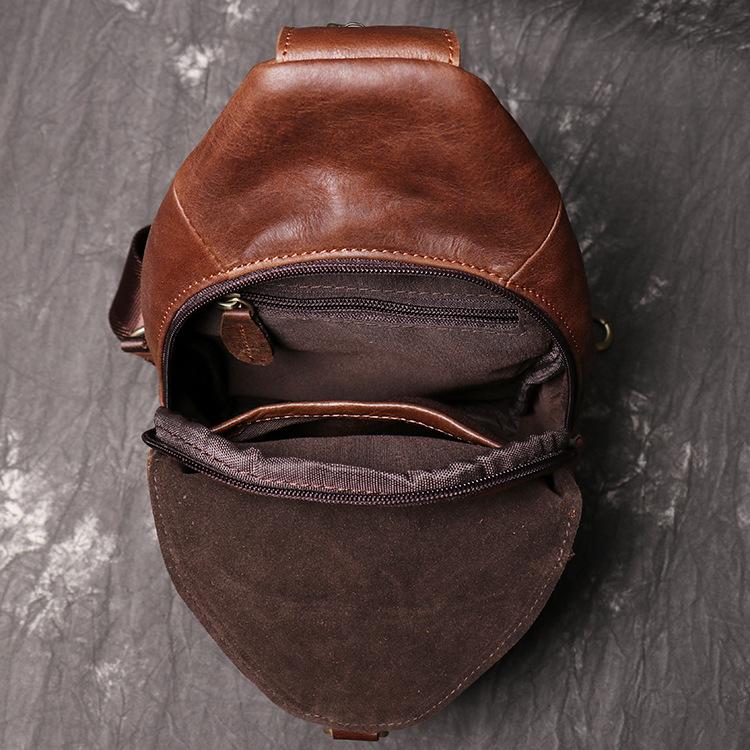 Style: Brown Leather Backpack Men's 8-inch Sling Bag Chest Bag One shoulder Backpack Sports Bag For Men