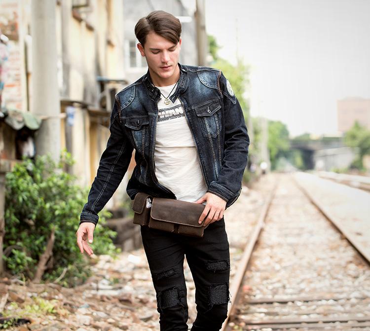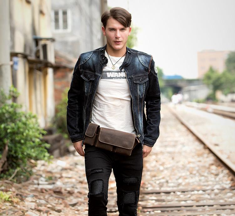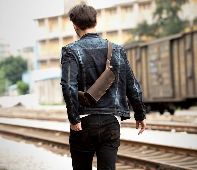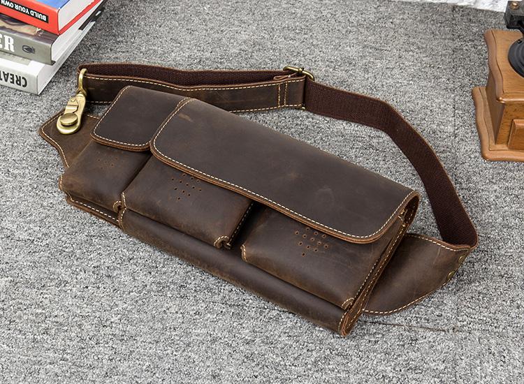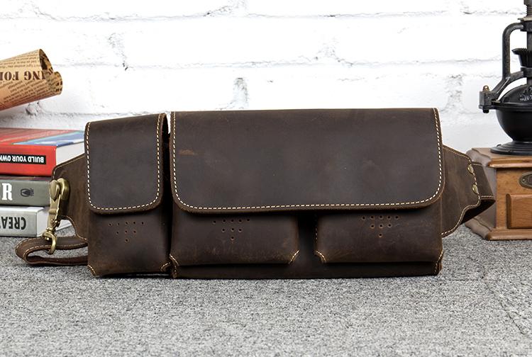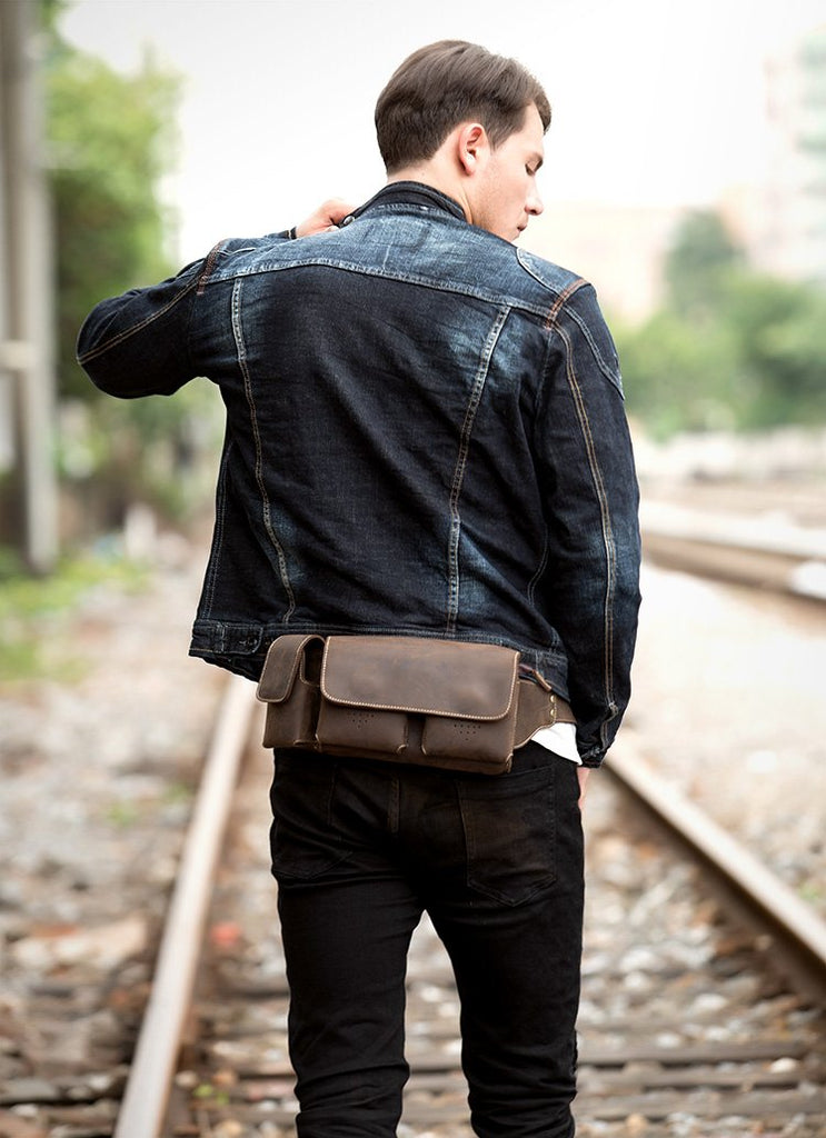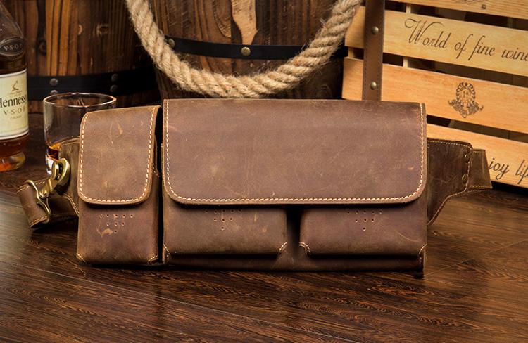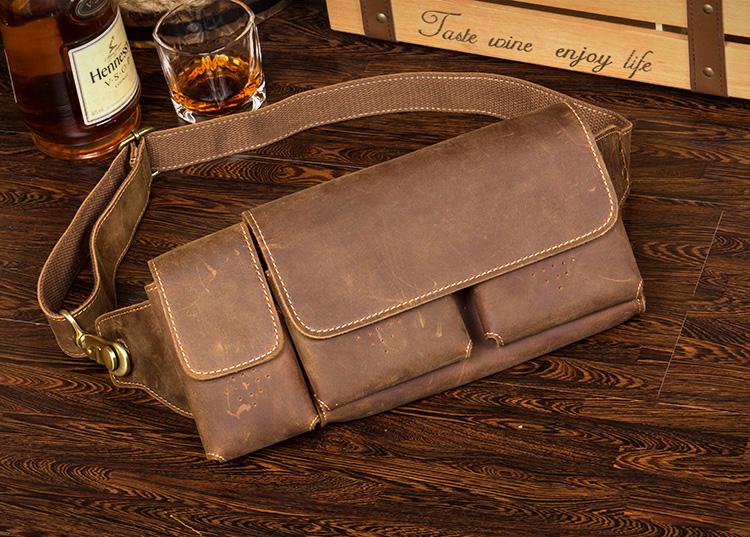Style: Brown Leather Mens Fanny Pack Waist Bag Hip Pack Light Brown Belt Bag Bumbag for Men