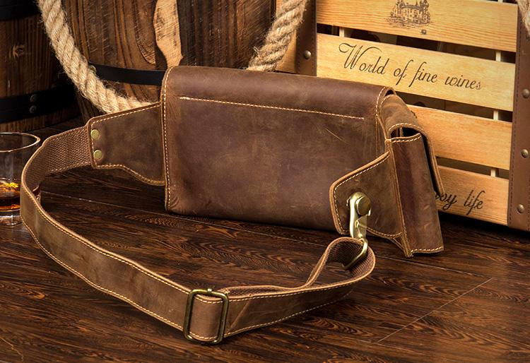 Design: Brown Leather Mens Fanny Pack Waist Bag Hip Pack Light Brown Belt Bag Bumbag for Men