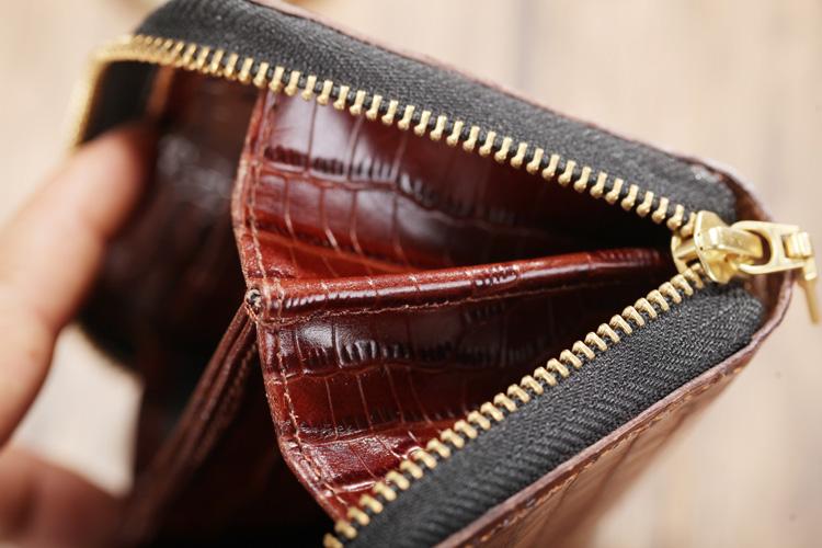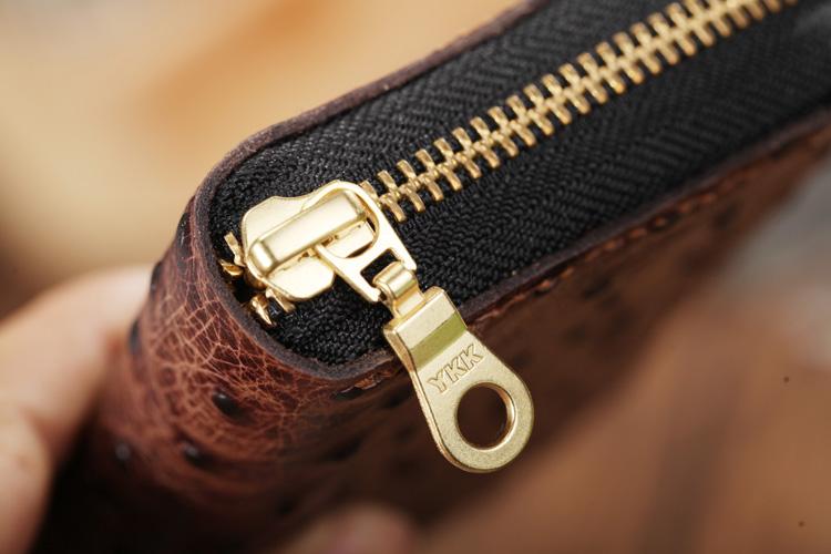 Design: Brown Ostrich Pattern Leather Mens Black Zipper Bifold Long Wallet Black Clutch Wallet For Men