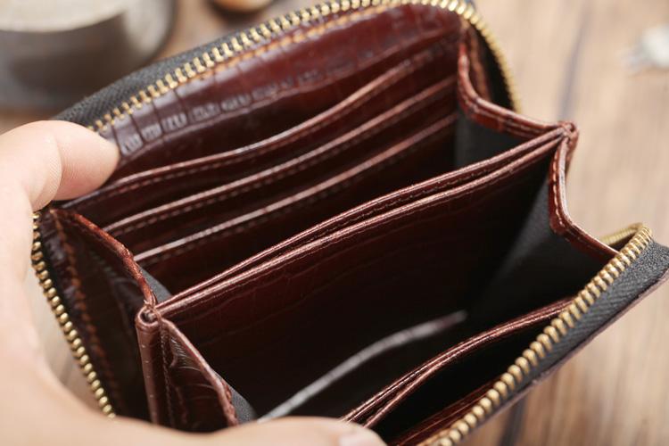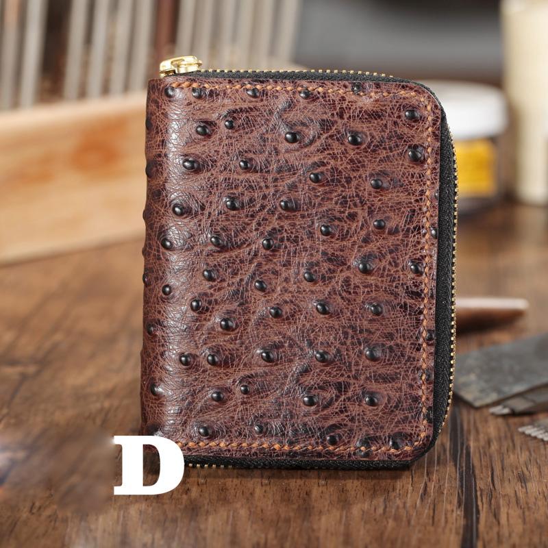 Style: Brown Ostrich Pattern Leather Mens Black Zipper Bifold Long Wallet Black Clutch Wallet For Men