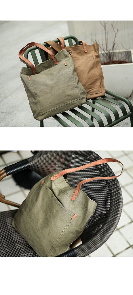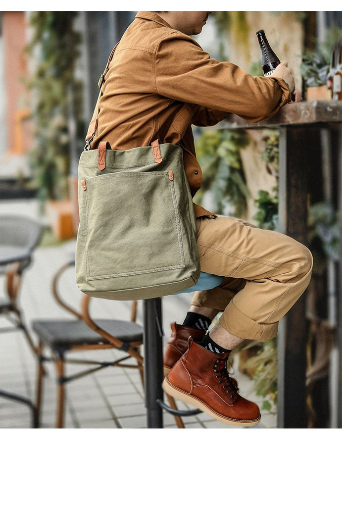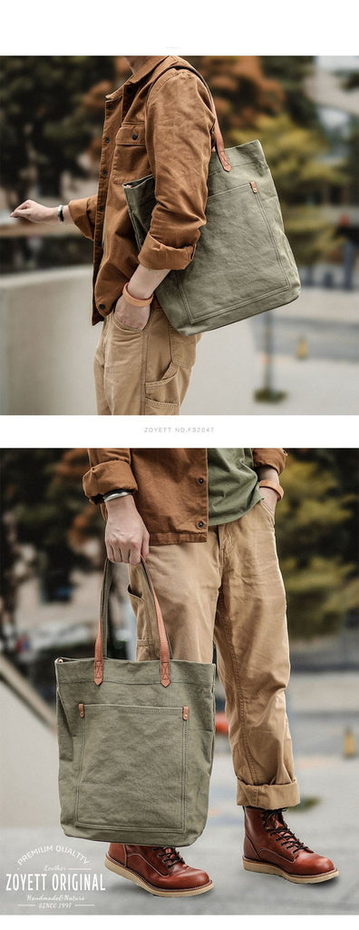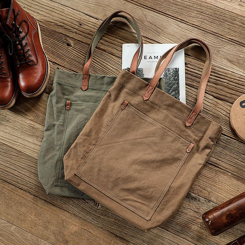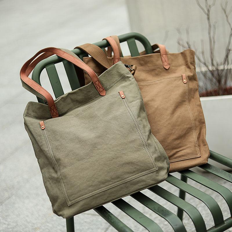 Design: Brown Vintage Canvas Men Womens Large Tote Bag Green Canvas Shoulder Tote Bag Shopper Tote For Men
