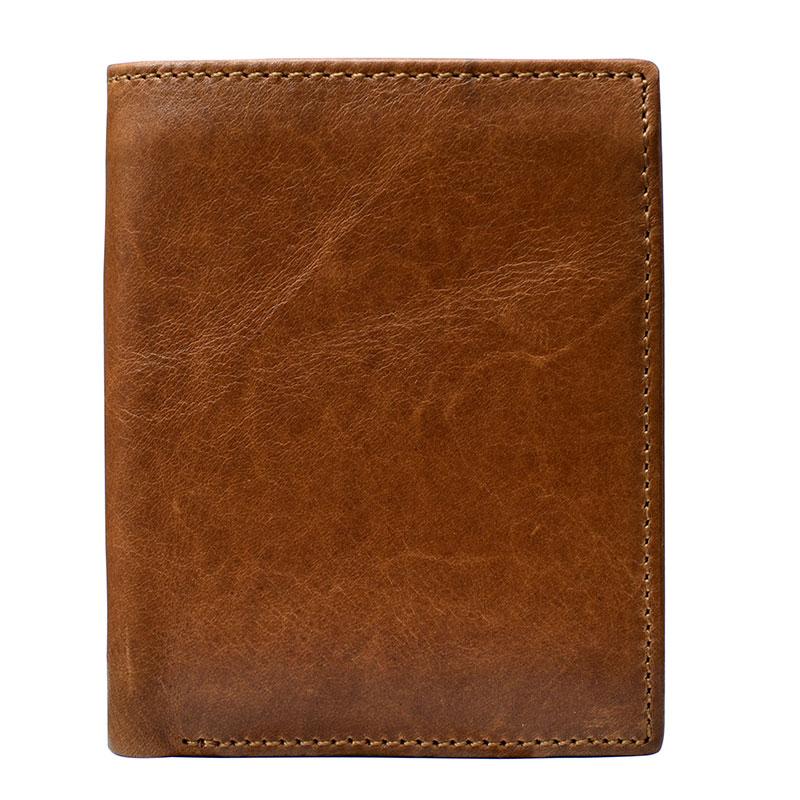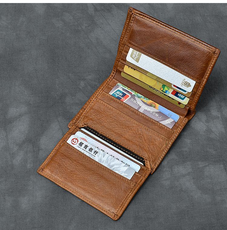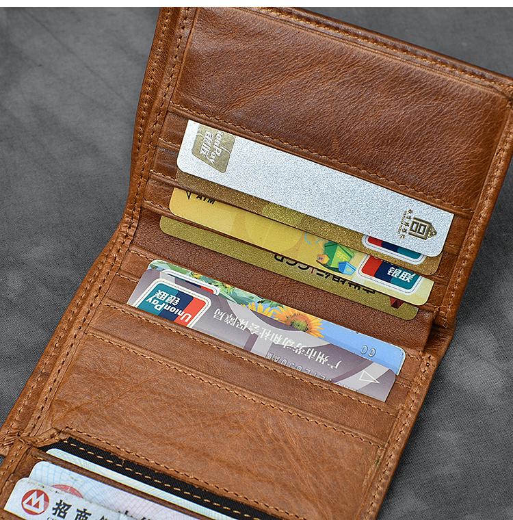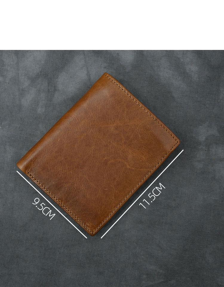 Design: Brown Waxed Leather Mens Women's billfold Business Wallet Trifold Card Wallet For Men