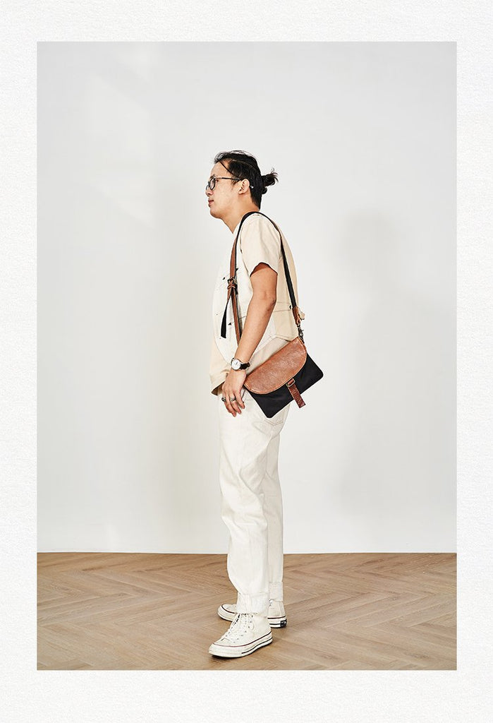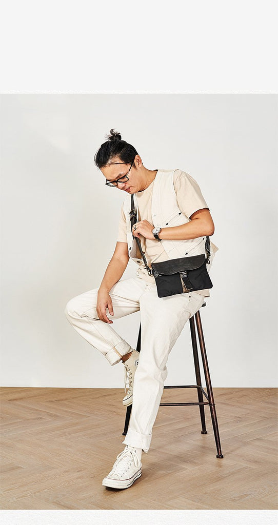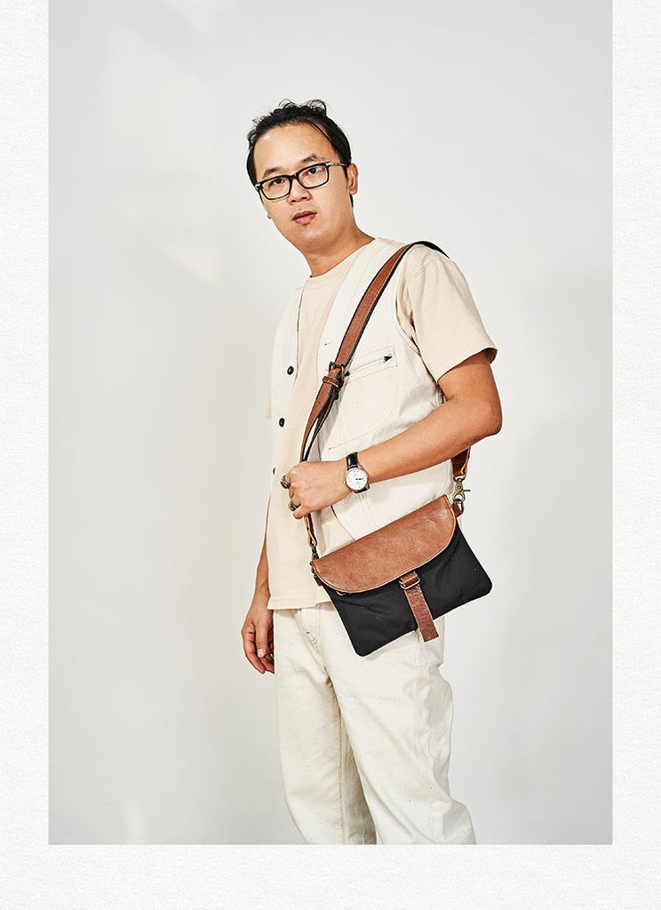 Design: Canvas Cool Mens Shoulder Bag 8 inches Canvas Handbag Canvas Crossbody Bag for Men Women