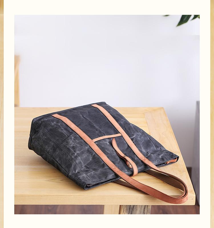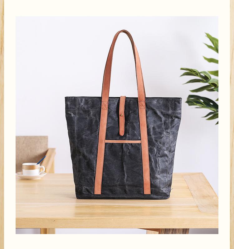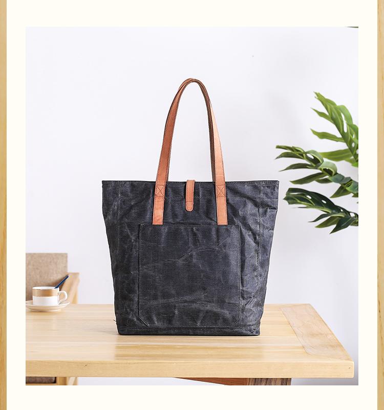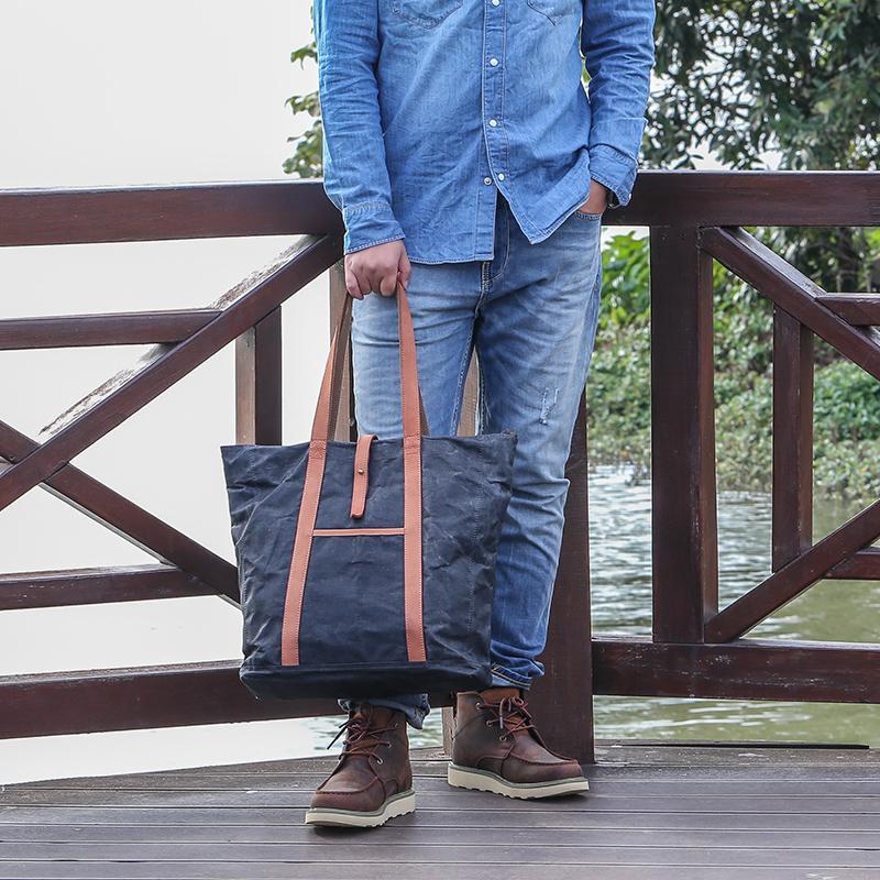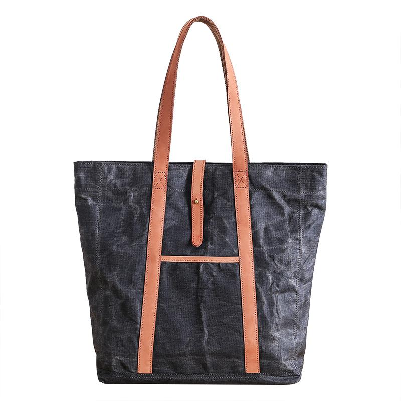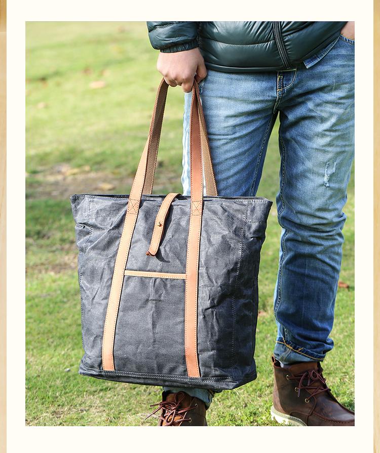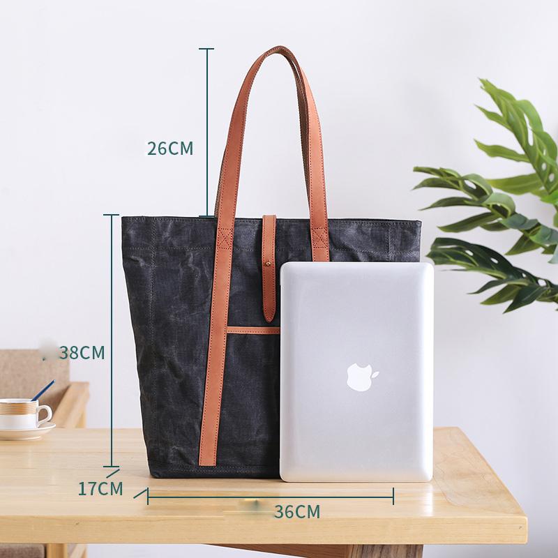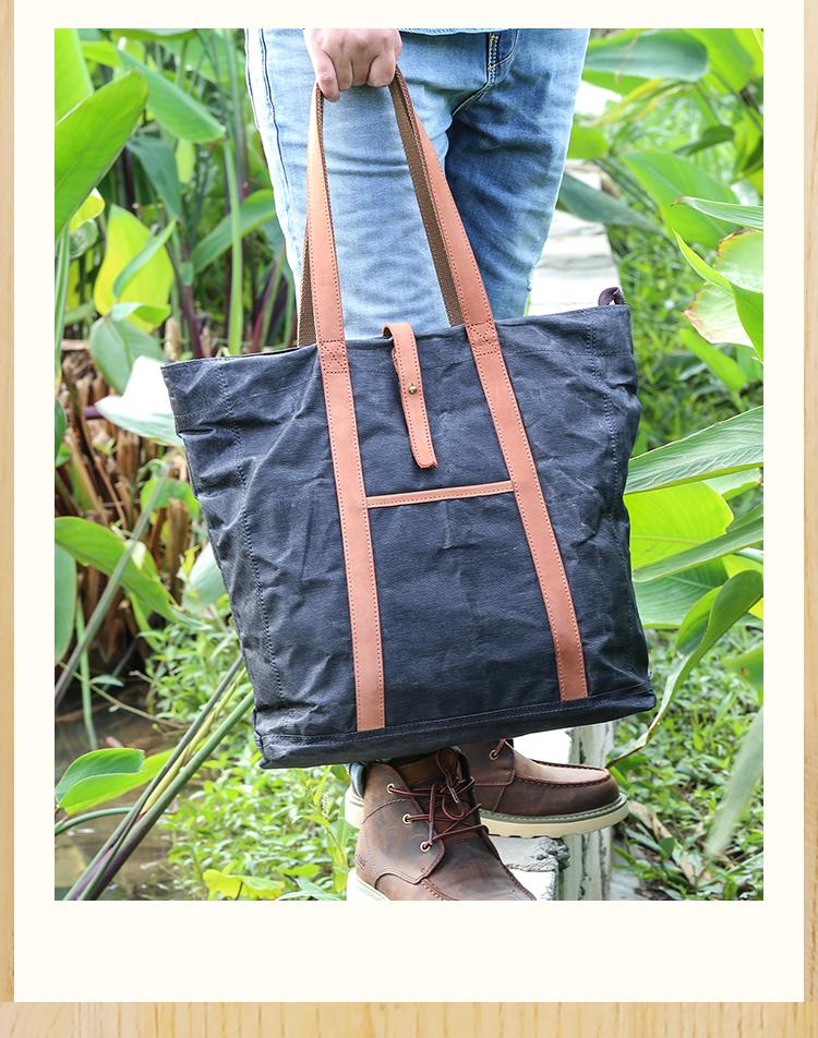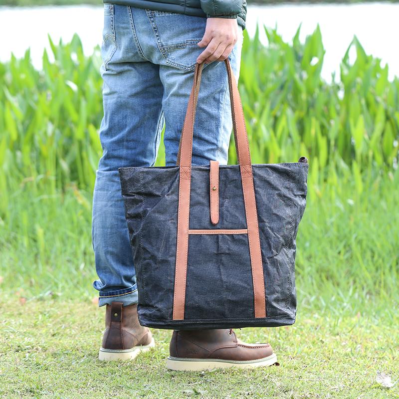 Design: Canvas Leather Mens Womens Black Waterproof Tote Bag Handbag Tote Bag Shoulder Bag Tote Purse For Men